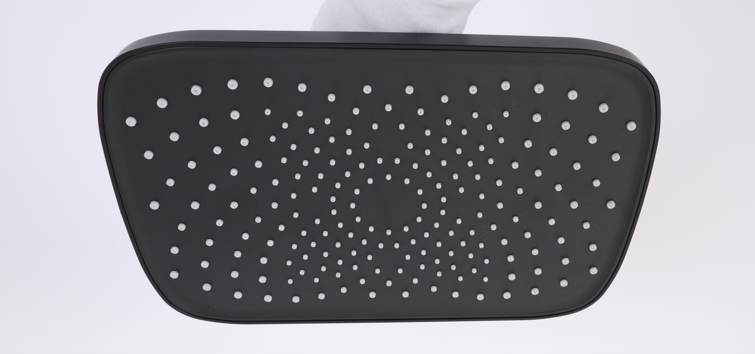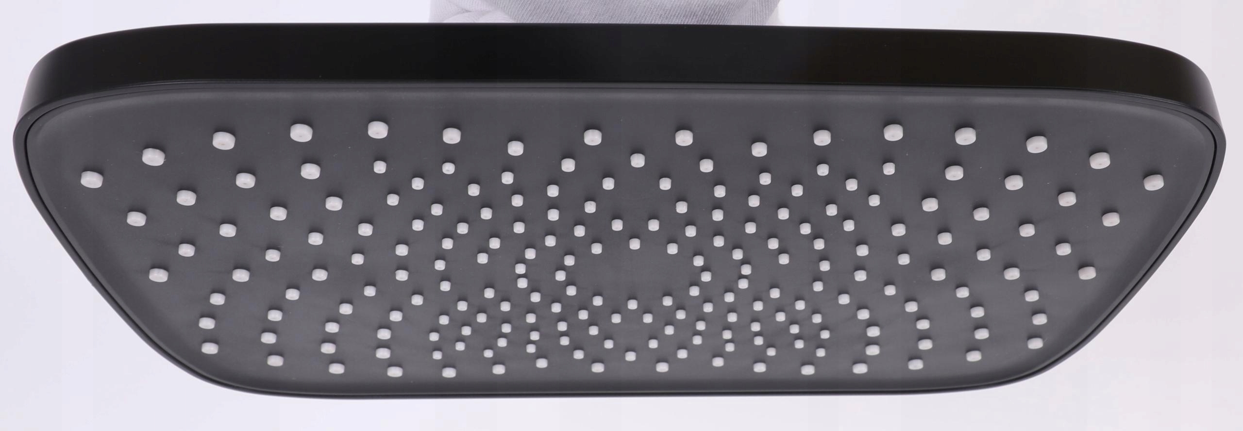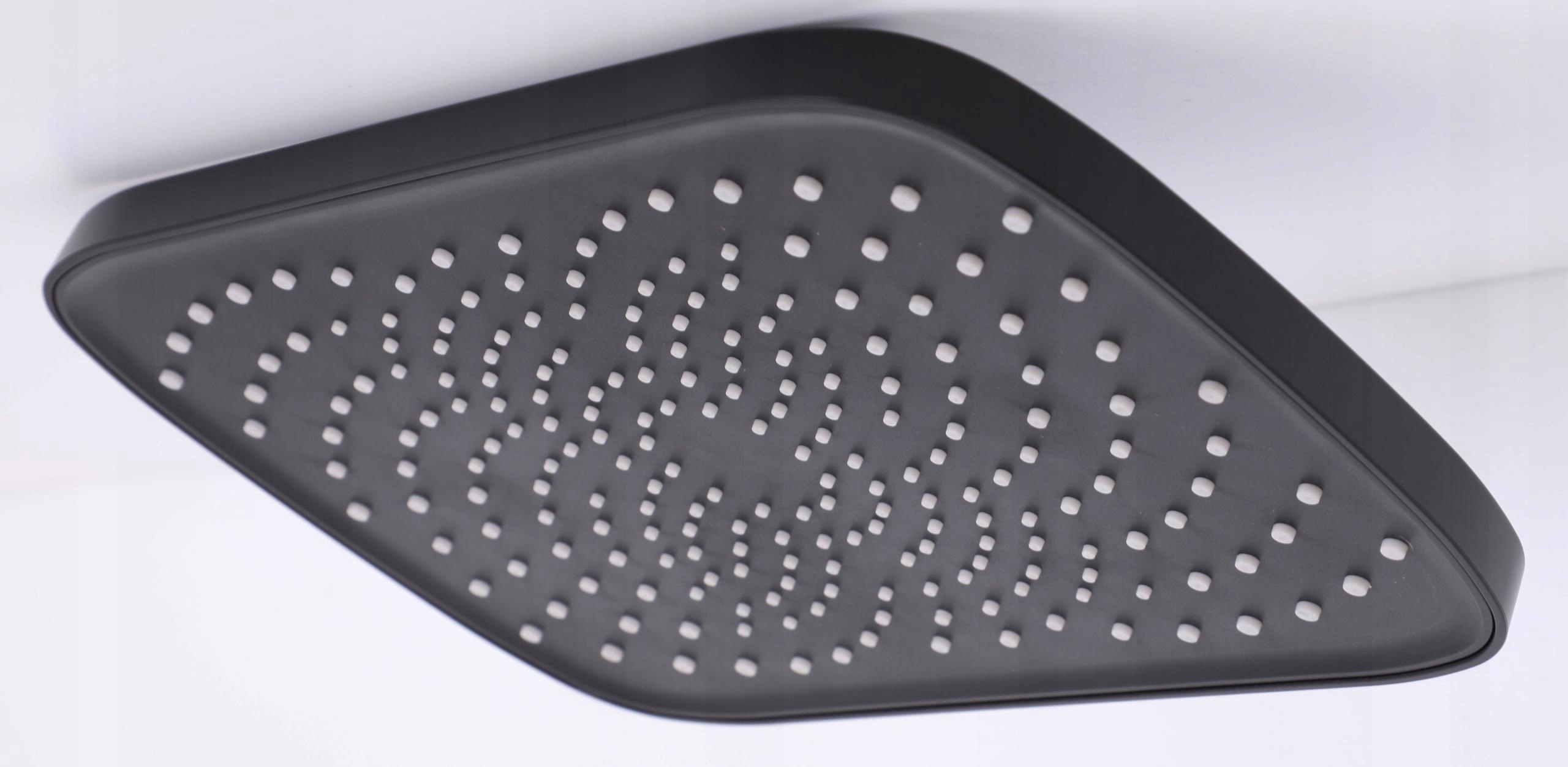 Прямокутна душова лійка розміром 30х20 см, матово-чорна, виготовлена з високоякісного пластику.