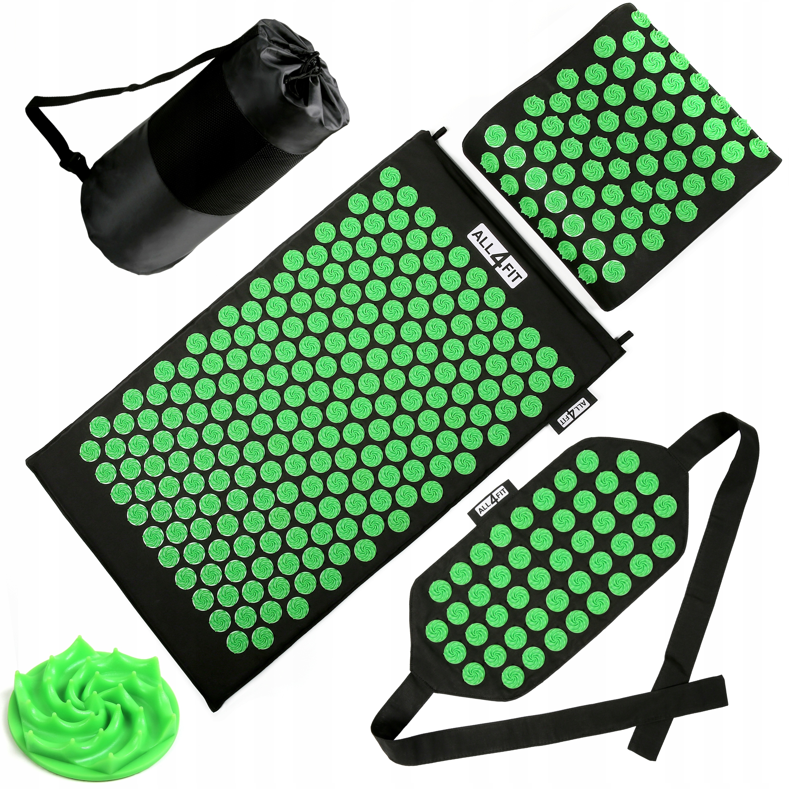 Килимок, подушка та акупресурний пояс, які використовуються разом, ще ефективніші. З їх допомогою можна полегшити хвороби хребта. Набір для точкового масажу є ефективним засобом у боротьбі з болем в опорно-руховому апараті.