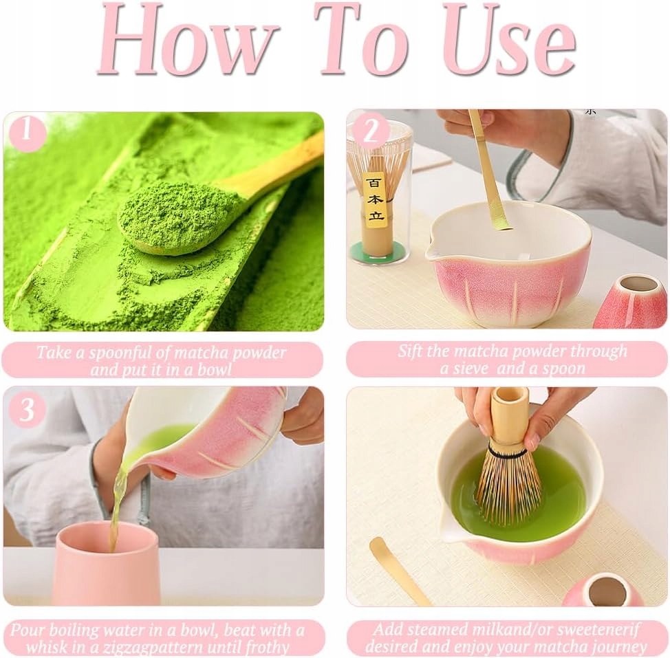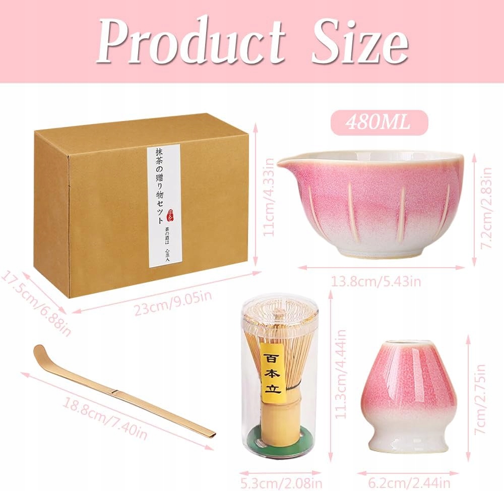 Набір Matcha Brooty, Macha Tea Set, набір керамічних матчів, набір стартерів Matcha, ложки матчів, матчі чаші з воронкою та ручкою мітли для Matcha (Pink)