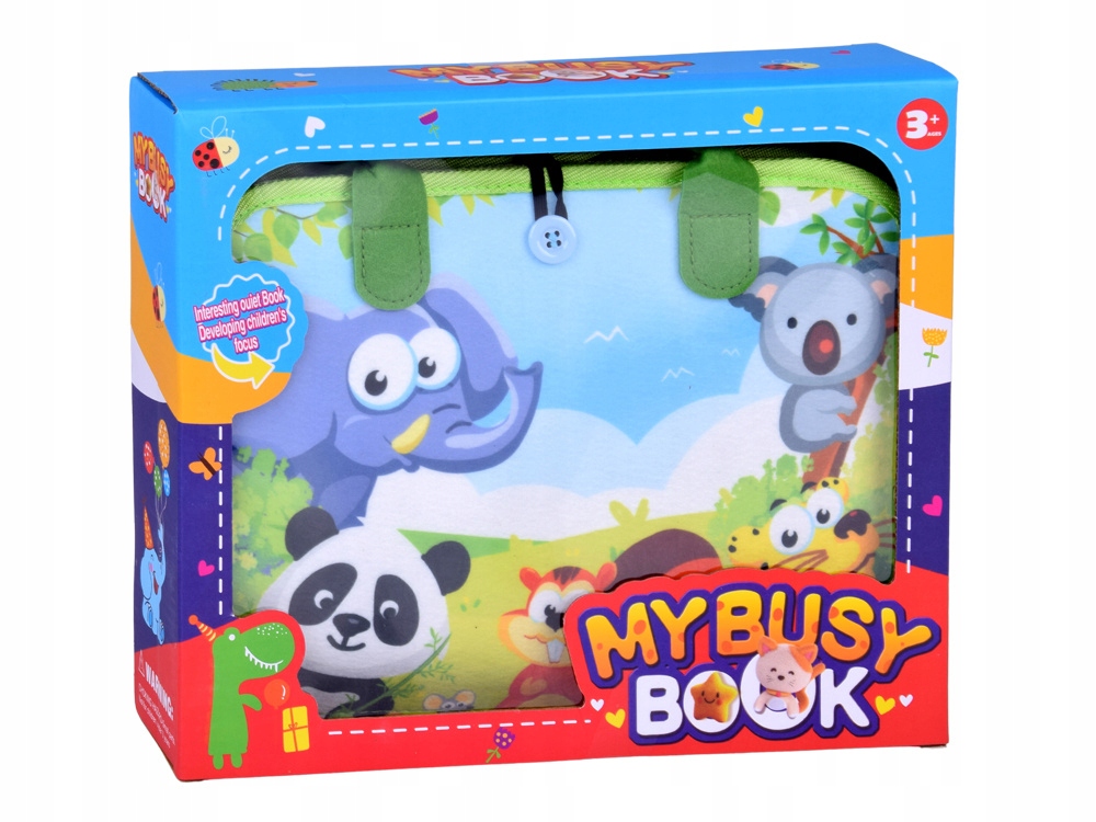 Відкрийте для себе надзвичайну навчальну книгу, яка підтримує розвиток вашої дитини через гру! Наша сенсорна книжка складається з 6 сторінок, наповнених барвистими рухливими елементами, які активізують почуття, розвивають дрібну моторику та вчать самостійності. На «обкладинці» є милий малюнок із тваринами, а на звороті — алфавіт.