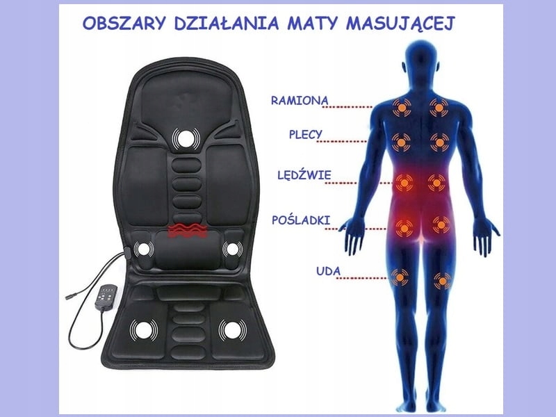 Надзвичайно практичний та функціональний масажний килимок для використання в домашніх умовах, офіс або машина. Якщо ви хочете відпочити після важкого робочого дня, цей килимок для вас. Сядьте комфортно у своєму улюбленому кріслі під час перегляду телевізора та відпочинку. Ви проводите 8 годин перед столом? Поширюйте масажний килимок на стільці та проведіть масажні сеанси, не перериваючи роботу. Довгі години за кермом більше не будуть страшними, якщо супутником подорожей буде килимок, який не тільки розслабитиме болі м’язи, але і при необхідності зігріється. У килимку є кілька програм та рівнів інтенсивності, тому кожен вибере потрібний для себе. Ціле працює з пульта дистанційного керування, а набір включений до мережі та зарядного пристрою.