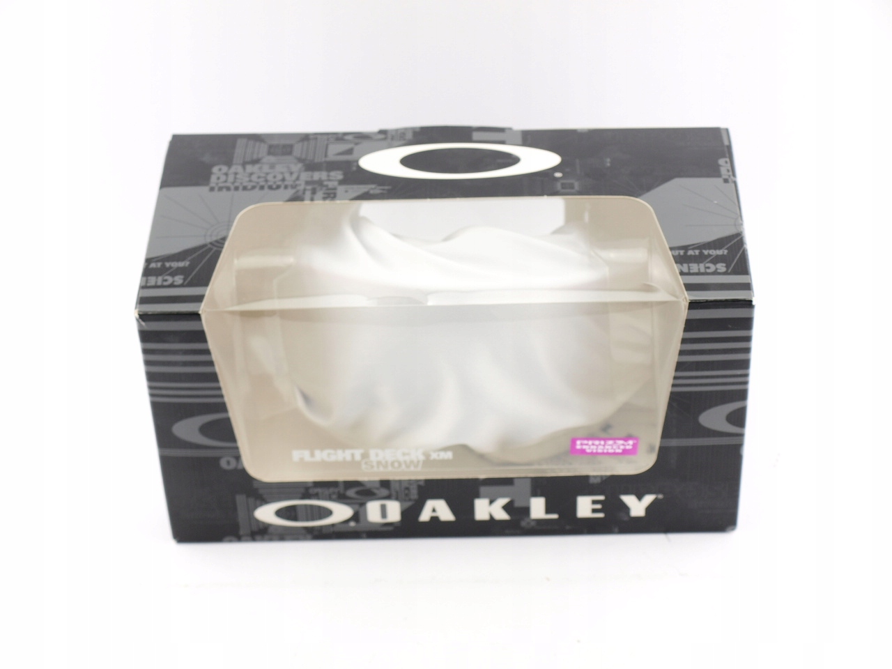 Flight Deck XM — це універсальні окуляри Oakley, які можна встановити на різні типи шоломів, а також на більшість окулярів з рецептом, забезпечуючи максимальний комфорт на схилі. Лінзи виготовлені з використанням оптики High Definition Optics, завдяки чому зображення дуже чітке, незалежно від погоди. Відсутність рамки робить поле огляду надзвичайно великим, а покриття F3 проти запотівання захищає від осідання водяної пари. Внутрішня сторона окулярів покрита потрійним поролоном, що відводить вологу. а механізм кріплення дозволяє швидко та легко замінити лінзи. Модель зі склом середнього розміру.