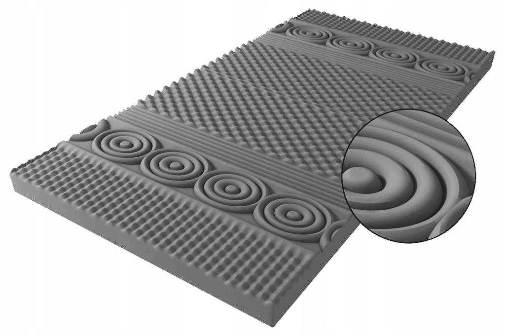 Фотографії матраців є ілюстративними. Кольори зображених пінопластів, візерунок профільованого пінопласту та візерунки стьобання чохла на ілюстративному фото можуть відрізнятися, але властивості матраца залишаються незмінними