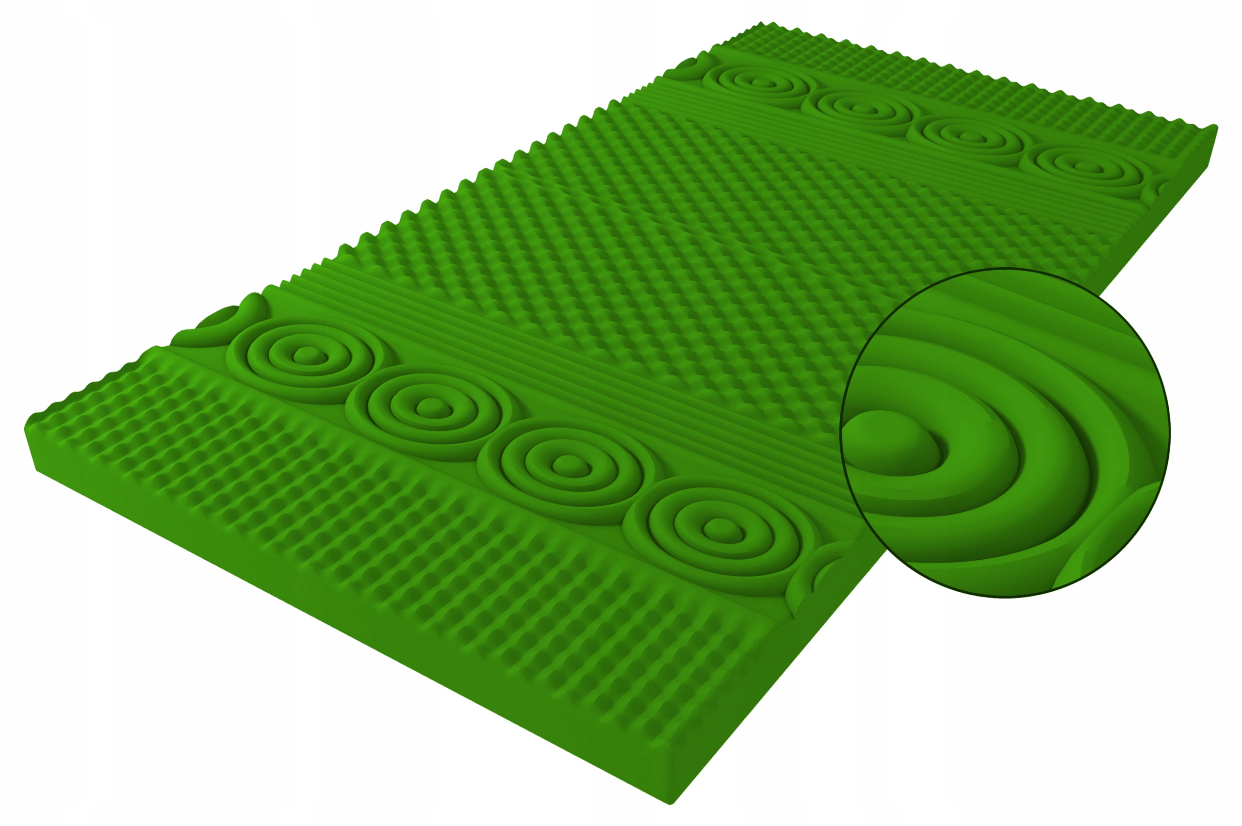 Масажна сторона характеризується пінопластовими ріжучими зонами, які дозволяють масажувати м’язи під час сну, створюючи неймовірний ефект відпочинку. Рекомендується для людей з болем у м’язах або схильністю до м’язових судом. Це значно покращує комфорт сну, забезпечуючи ідеальну підтримку хребта та запобігає утворенню пролежнів.
