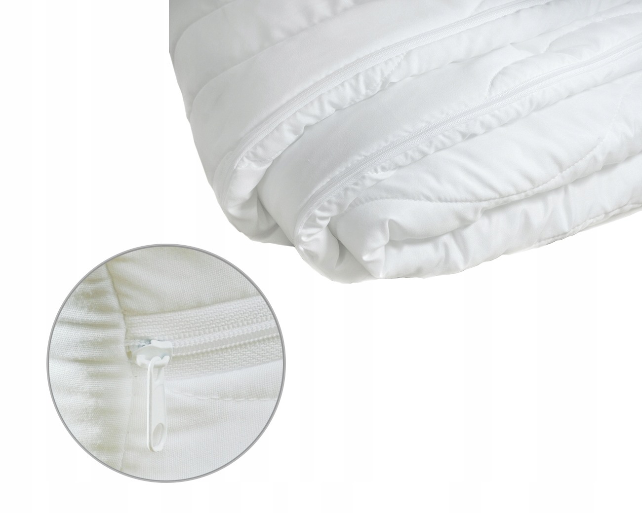 ПОКРИВ КОМФОРТ, який використовується у виробництві, виготовлений з високоякісної тканини. Завдяки односторонньому стьобанню він надзвичайно пухнастий і ніжний на дотик. Матеріал характеризується високою міцністю і світловим дизайном. Чохол зменшує накопичення пилових кліщів, тому його рекомендують алергікам і чутливим людям. Всі з'єднання з внутрішньої сторони закріплені оверлоком. Блискавка, вшита з трьох сторін, забезпечує швидке зняття чохла. Його можна прати при температурі до 40 градусів, що забезпечує гігієнічний сон.