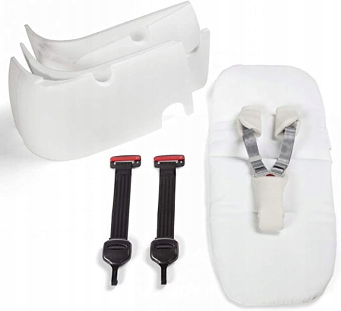 Комплект поставки: дитячі шлейки, гачки для кріплення до автомобіля, пінопластові стінки для гондоли, матрац з прорізами для ременя.