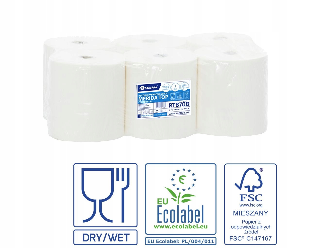 Паперові рушники як верхній ценрум Merida Centrum витягує максі, білий, діаметр 20 см, довжина 320 м, одношарові, шкала 6 валиків, еколабел