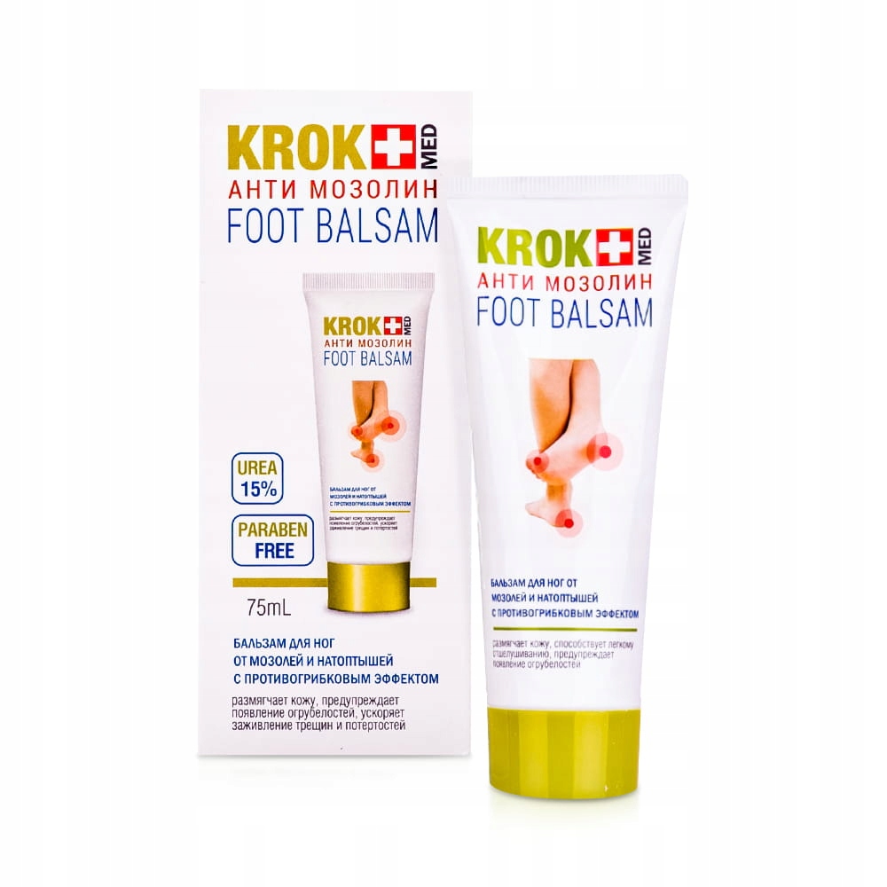 Бальзам КРОКМЕД Антимозолін пом'якшує огрубілу шкіру та полегшує видалення мозолів.