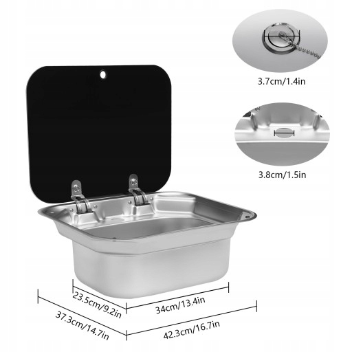 Компактний розмір: розмір цієї раковини невеликий (16,14 * 14,37 * 6,3 дюйма), що означає, що вона дуже компактна і підходить для використання в кемпінгових транспортних засобах або інших кімнатах з обмеженим простором, що покращує використання простору.