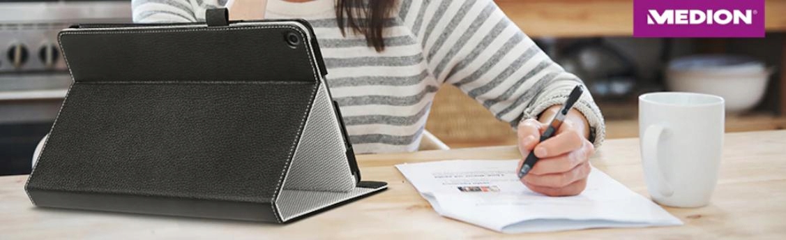 Чохол ідеально підходить для вашого нового планшета Medion Lifetab і захищає його від пошкоджень у повсякденному житті. Він дає вам доступ до всіх портів, кнопок і залишає камеру відкритою, щоб ви могли легко користуватися планшетом. Використані матеріали виключно високої якості - завдяки цьому ваш планшет не тільки виглядає набагато краще, але й зручніше та надійніше лежить у руці. Вбудована підставка є додатковою, інтегрованою функцією. Завдяки цьому ви можете розташувати свій планшет, наприклад, на столі, для більшого комфорту під час письма, серфінгу та перегляду фільмів.