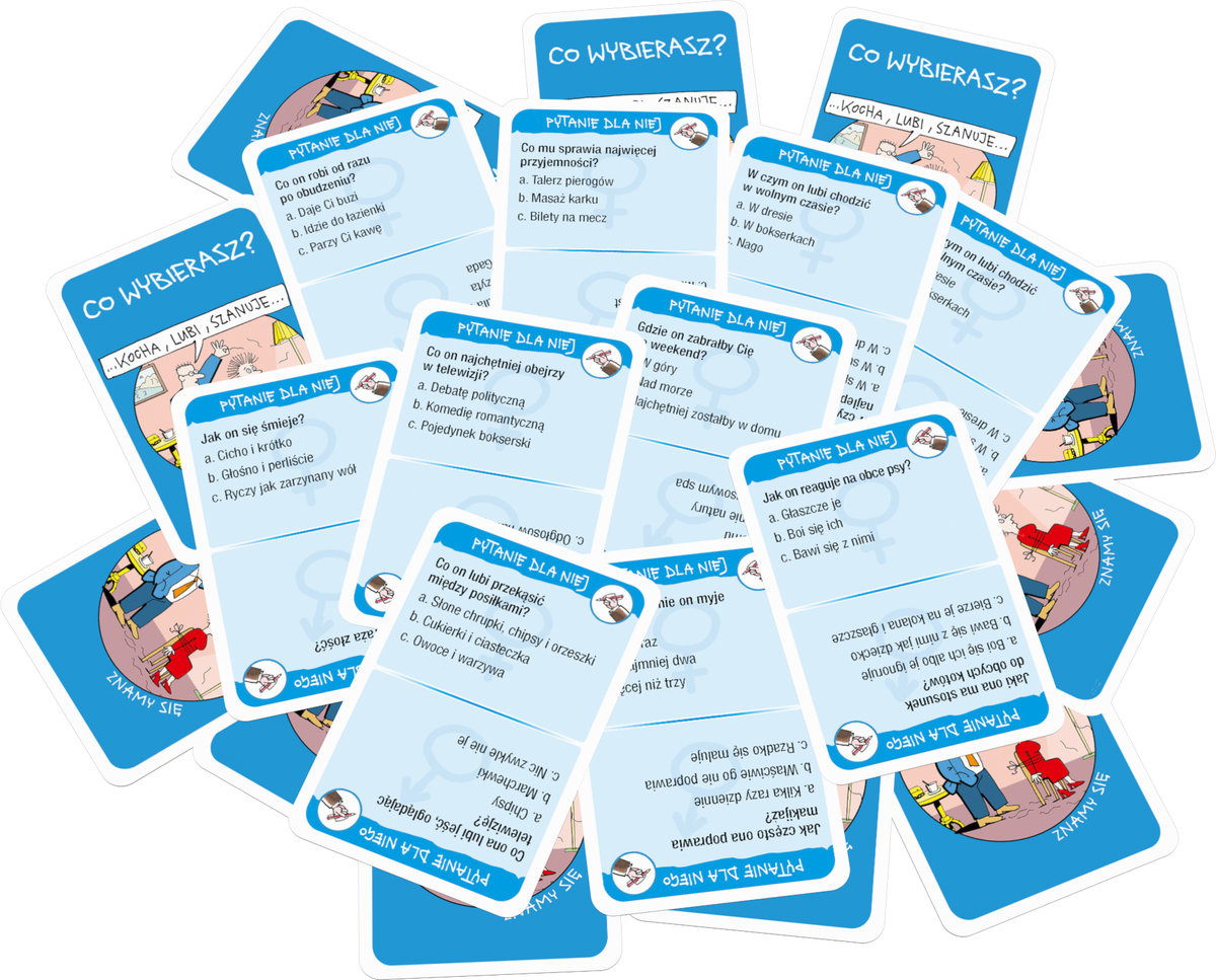 Гра вражає не лише продуманим дизайном, а й якістю виготовлення. Всі компоненти зроблені з міцного картону, який витримає багато ігор. Унікальні ілюстрації Анджея Млечко, які можна вважати малим прикладним мистецтвом, додають справжнього шарму всій грі. Можна впізнати характерний стиль ілюстратора, який знайомий з іронією в поєднанні з гумором. Повсякденні ситуації представлені у кумедній формі, яка сподобається кожному гравцеві. Всі ігрові елементи, в тому числі ті, що стосуються чоловічо-жіночих тем, представлені збалансовано та привабливо. Вам точно не буде соромно показати гру друзям і родині.