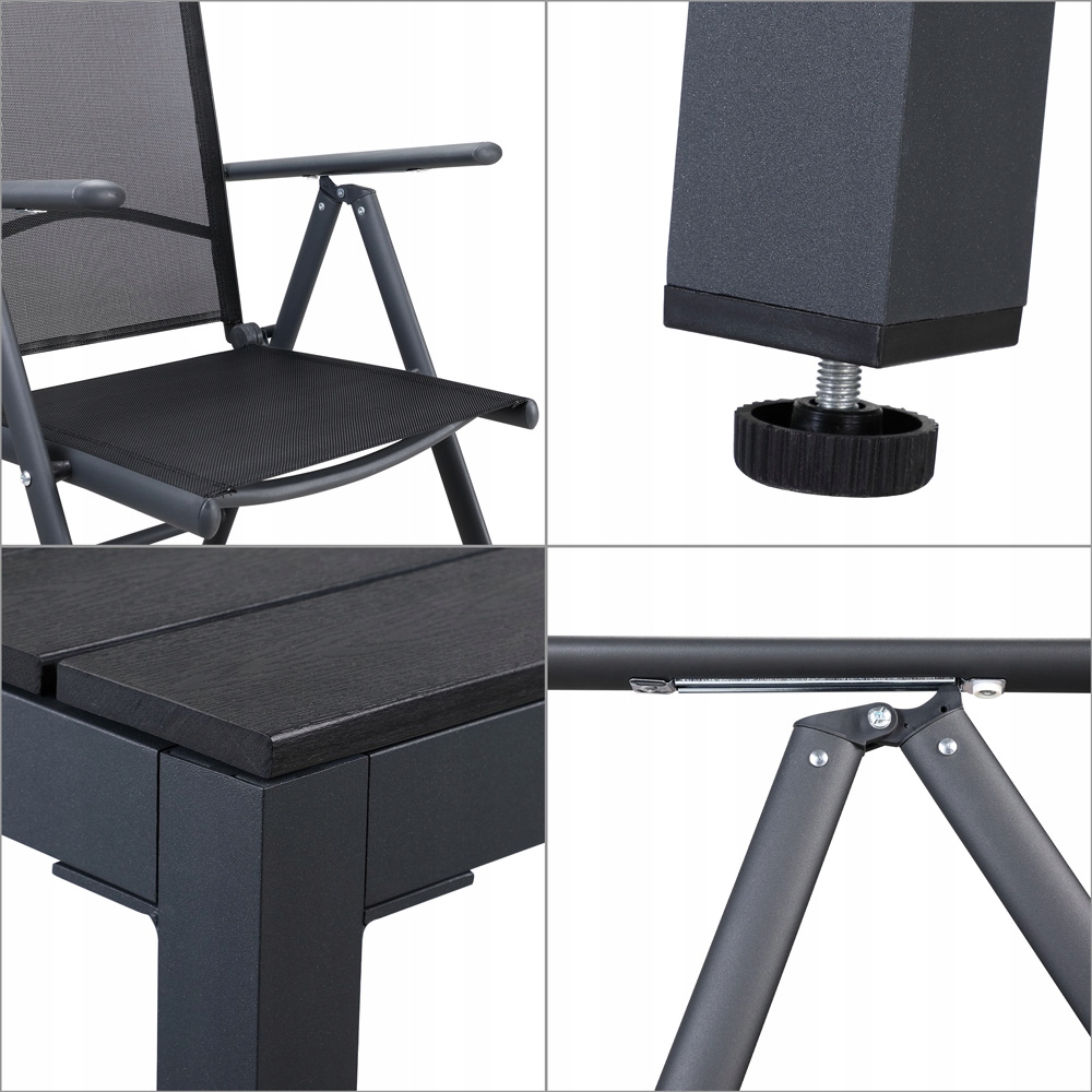 Ексклюзивний алюмінієвий садовий набір "Берн" із 7 предметів, верхня частина WPC і 8 складних