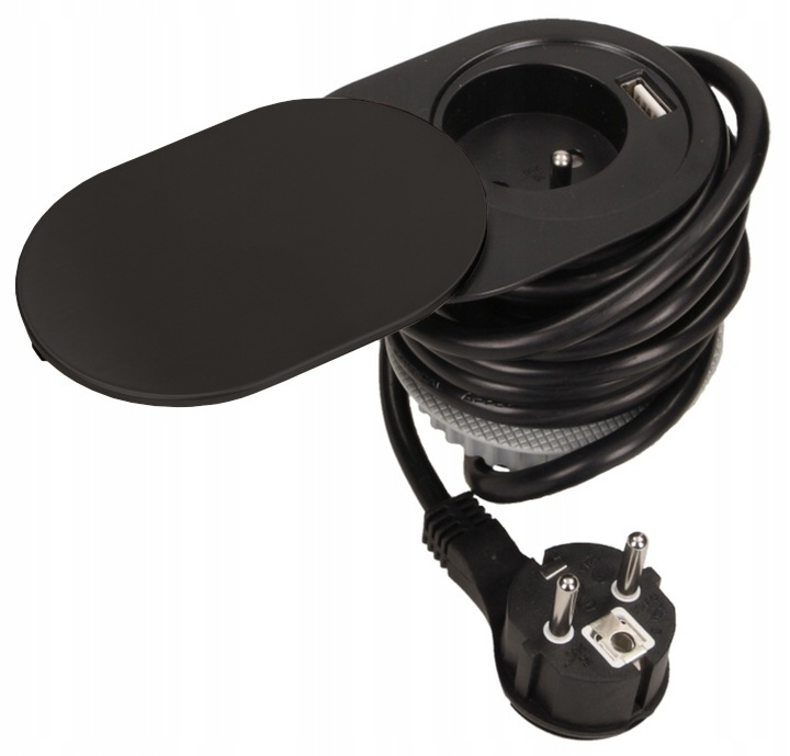 Меблева розетка врізна в стільницю 1x230V + 1xUSB