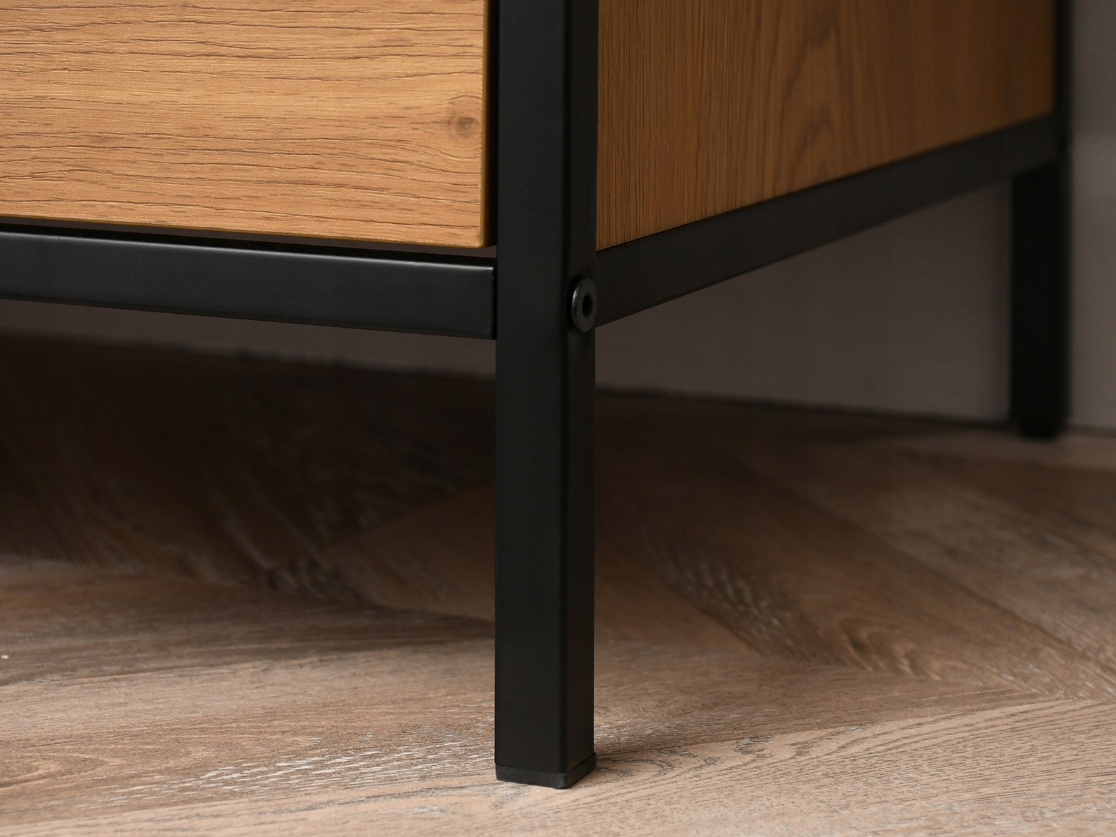 Набір меблів Samoa, включаючи два комоди, шафа RTV та стійку, буде ідеальною у вітальні чи гостьовій кімнаті. Сучасний стиль цього набору поєднує в собі сиру естетику промислового дизайну з практичною функціональністю, пропонуючи багато місця для зберігання та проявлення прикрас. Скрини допомагають організувати необхідні речі, а шафа RTV - це стабільне місце для мультимедійного обладнання. Книжкова шафа ідеально підходить для представлення книг, рослин або сувенірів, додавання унікального персонажа до інтер’єру.