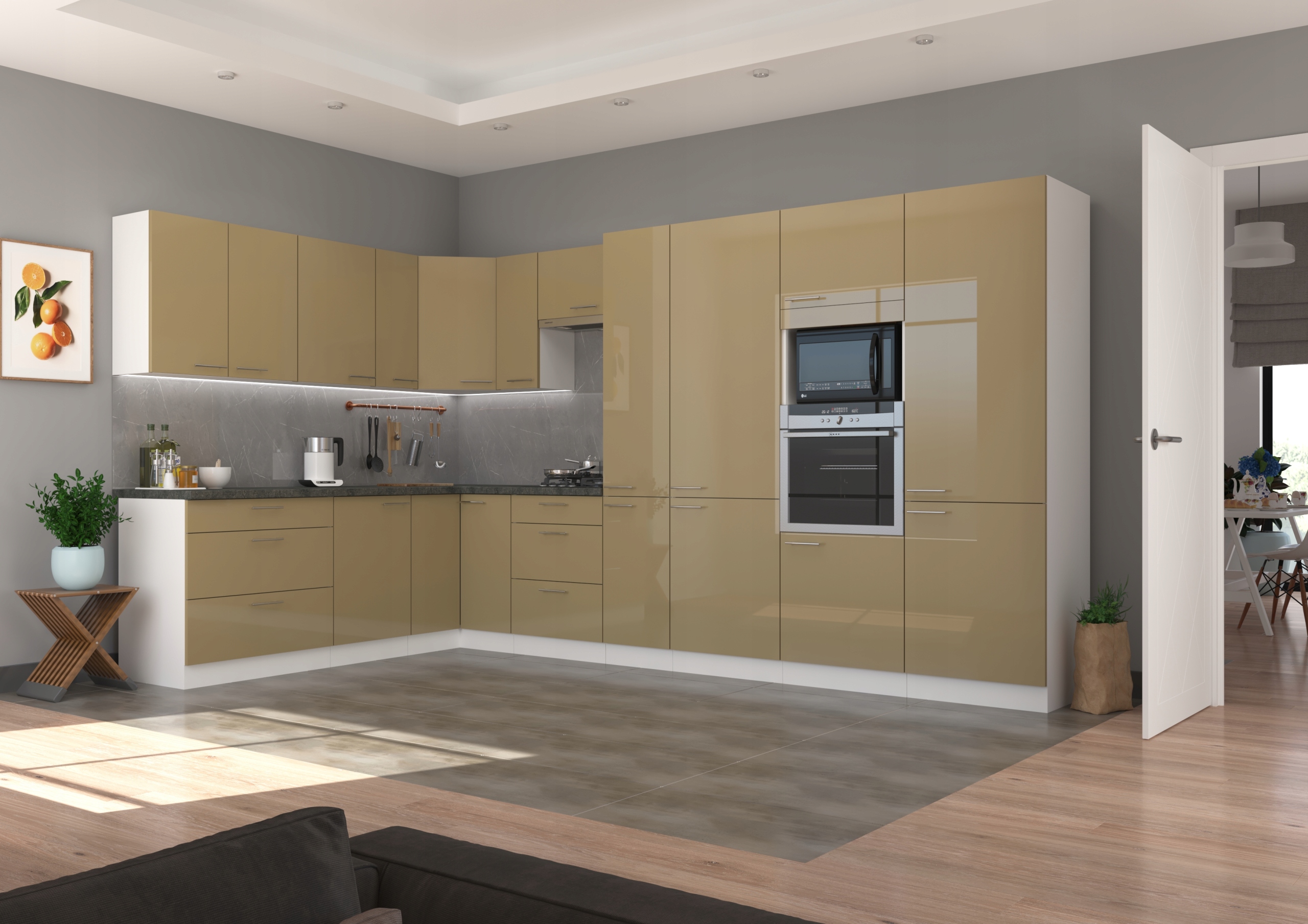 Меблі кухонні шафи Lara White, Grey, Cappucino Gloss 310 см без стільниці