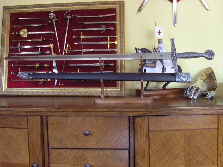 Чудово виготовлена копія з хромованої сталі Toledo. Лезо тупе і не підходить для заточування. Верхня частина піхов і рукоятка меча виготовлені з високовуглецевої сталі та багато декоровані. Ідеальний подарунок для любителів легенд про Артура.