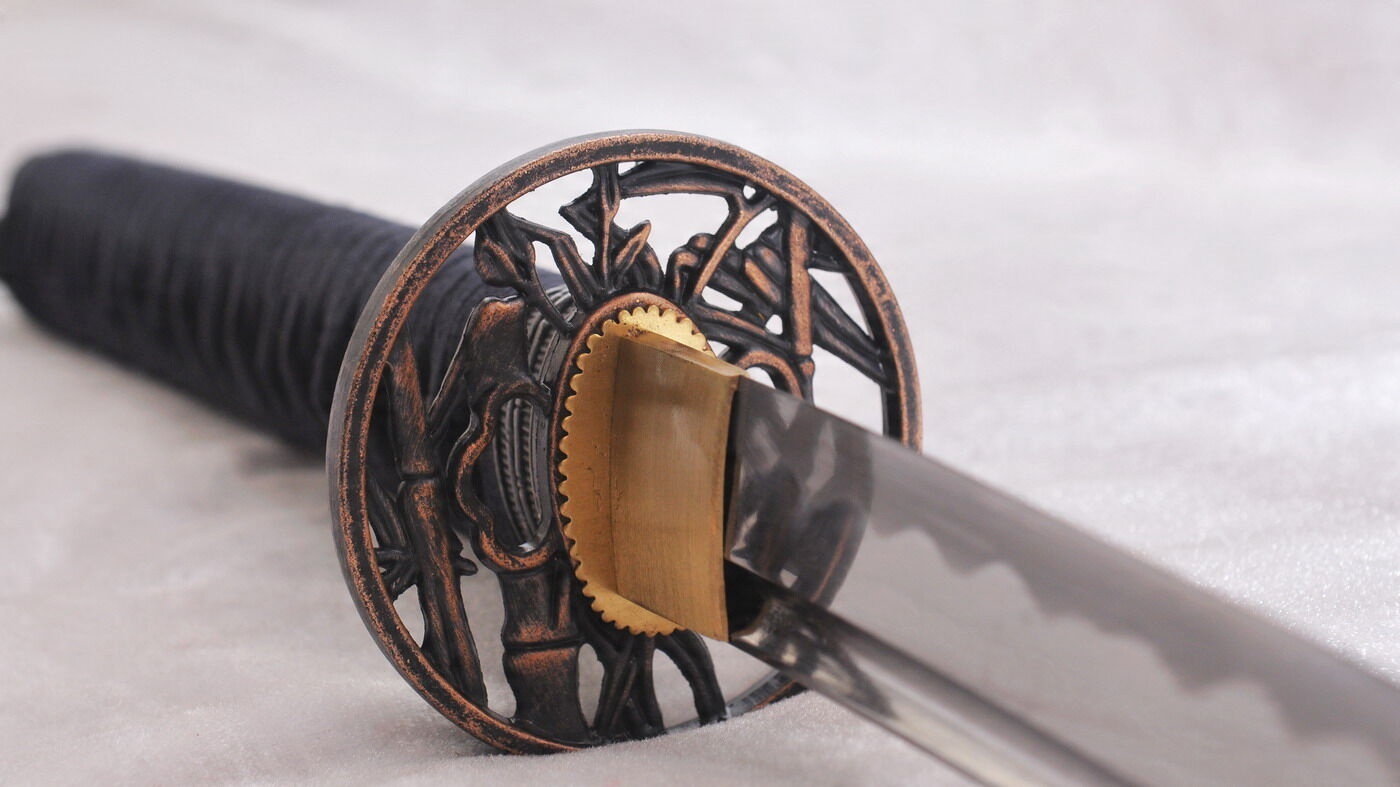 Клинок зі сталі 1065. Дерев'яна рукоятка, двостороння, вкрита світлою шкірою ската та переплетена струною для кращого захоплення. Цуба (кругла поперечина), кована з міді.