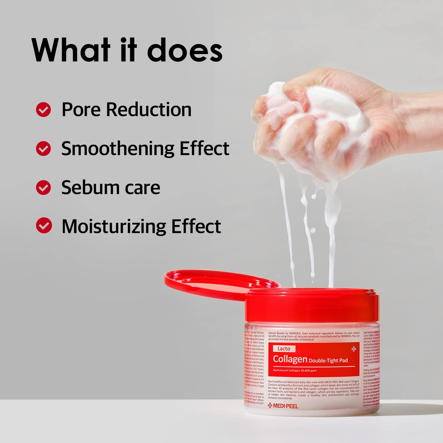 Екстракт з амінокислотами та гіалуроновою кислотою м’яко видаляє відмерлі клітини епідермісу, надлишки шкірного сала та забруднення. Містить дрібномолекулярний колаген і бактерії Lactobacillus, які зміцнюють шкірний бар'єр і забезпечують гладку і здорову шкіру. Усі продукти лінії Red Lacto Collagen зосереджені ферментованими молочнокислими бактеріями та колагеном, які є ключовими інгредієнтами цього догляду.