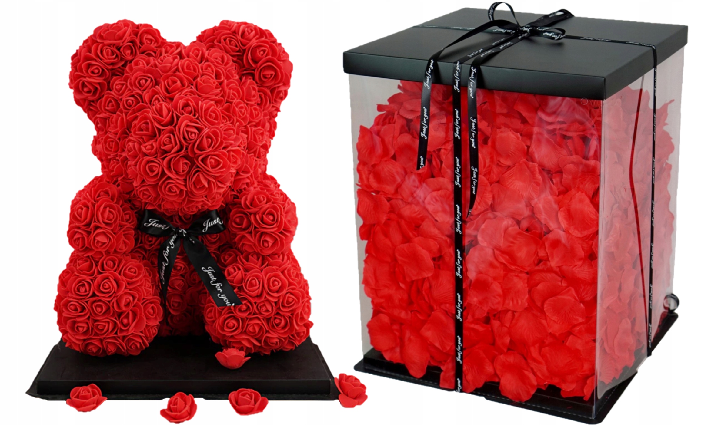 Коли іншій людині дарують подарунок, коли вона потягне за стрічку та відкриє коробку, із понад тисячі пелюсток троянд вийде ведмедик!