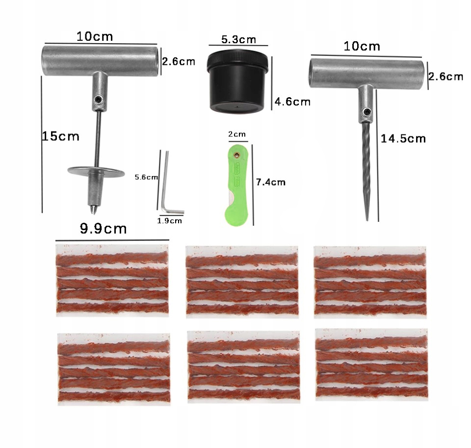 Набір для ремонту автомобільних шин. Маленька валіза містить набір міцних елементів, необхідних для самостійного ремонту.