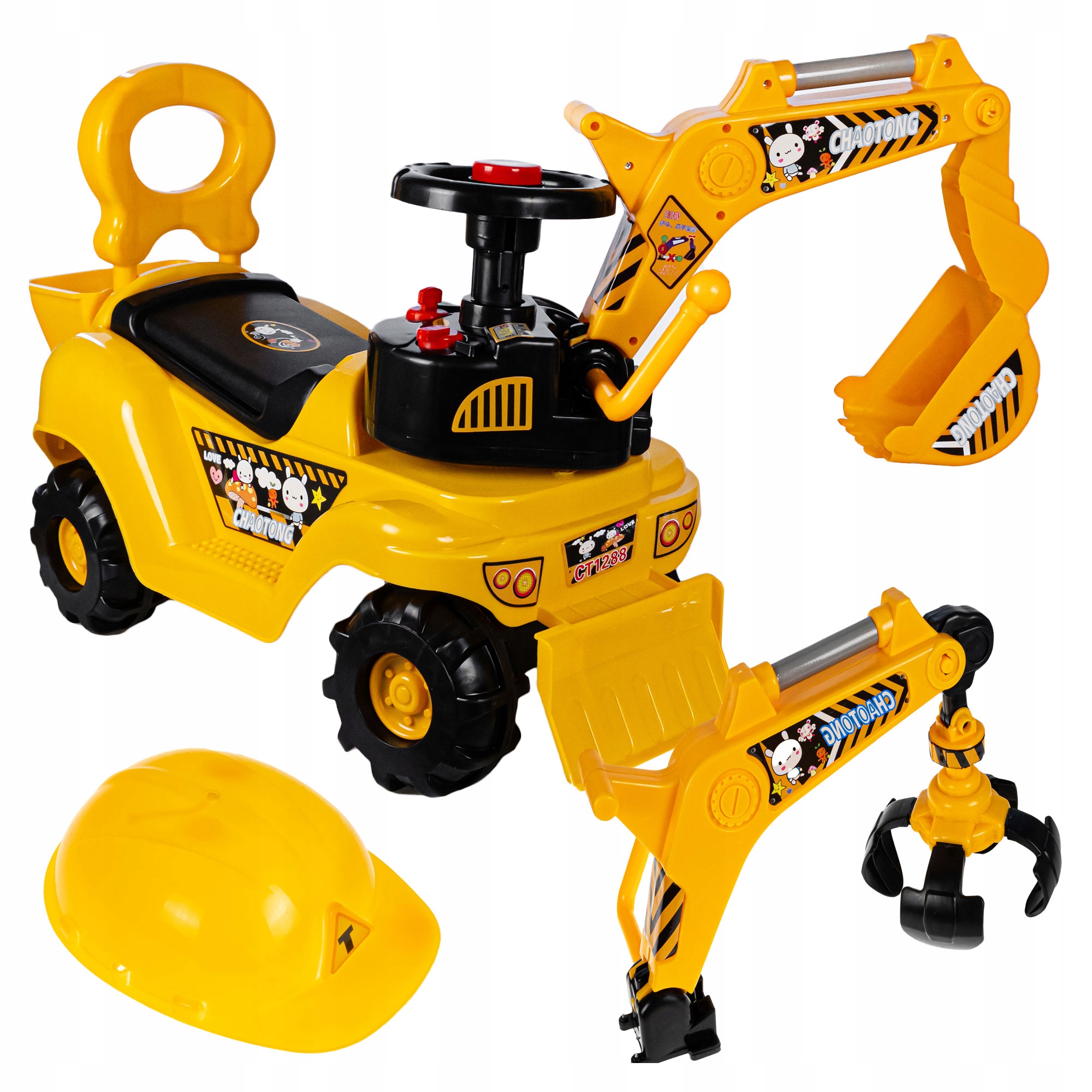 МЕГА ЕКСКАВАТОР-ШТОВХАТЕЛЬ З КОВШОМ І ЗАХВАТОМ ДЛЯ ДІТЕЙ 3в1 КЕРМО