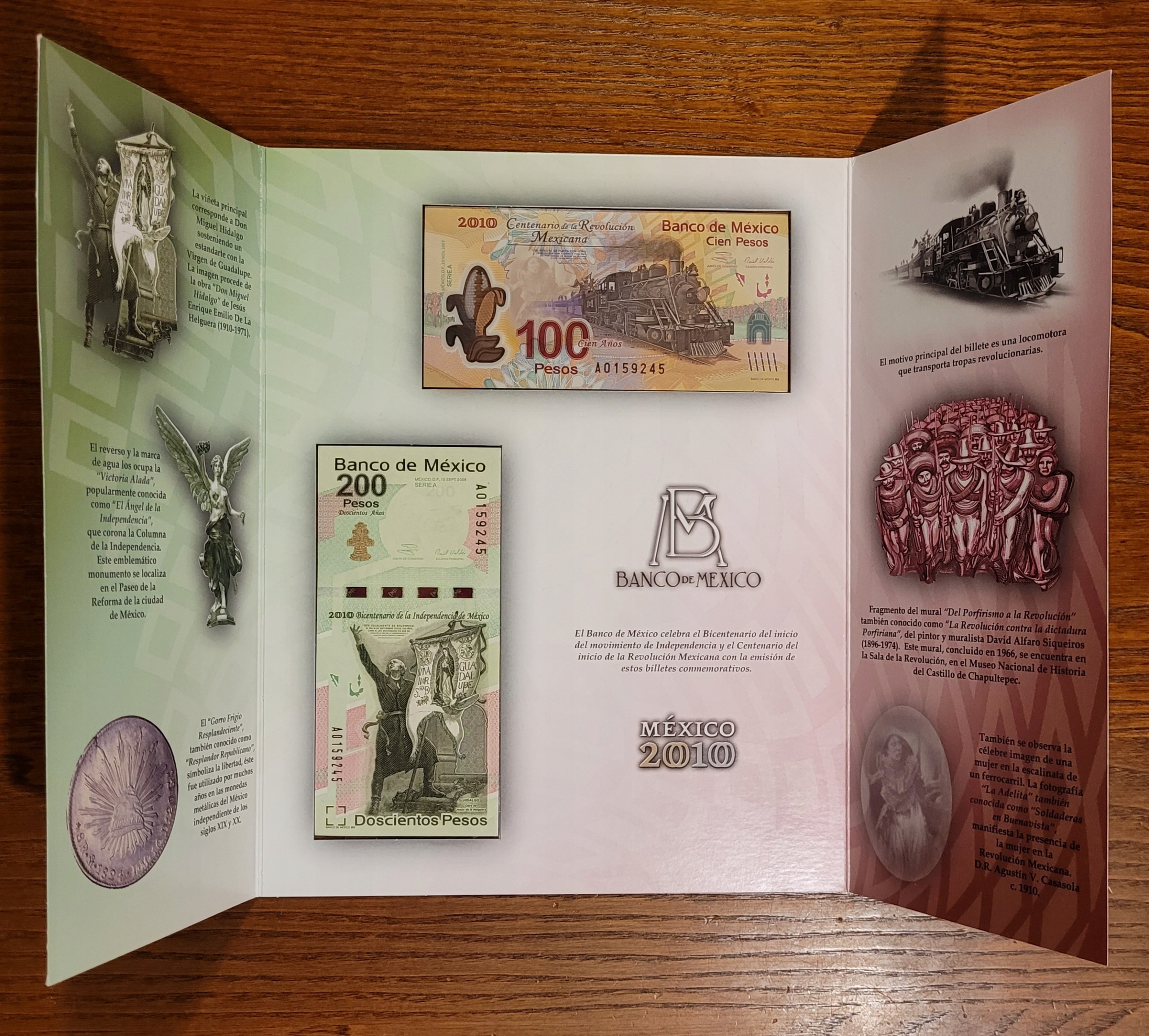Мексика 100 200 песо 2010 UNC Прибл. папка