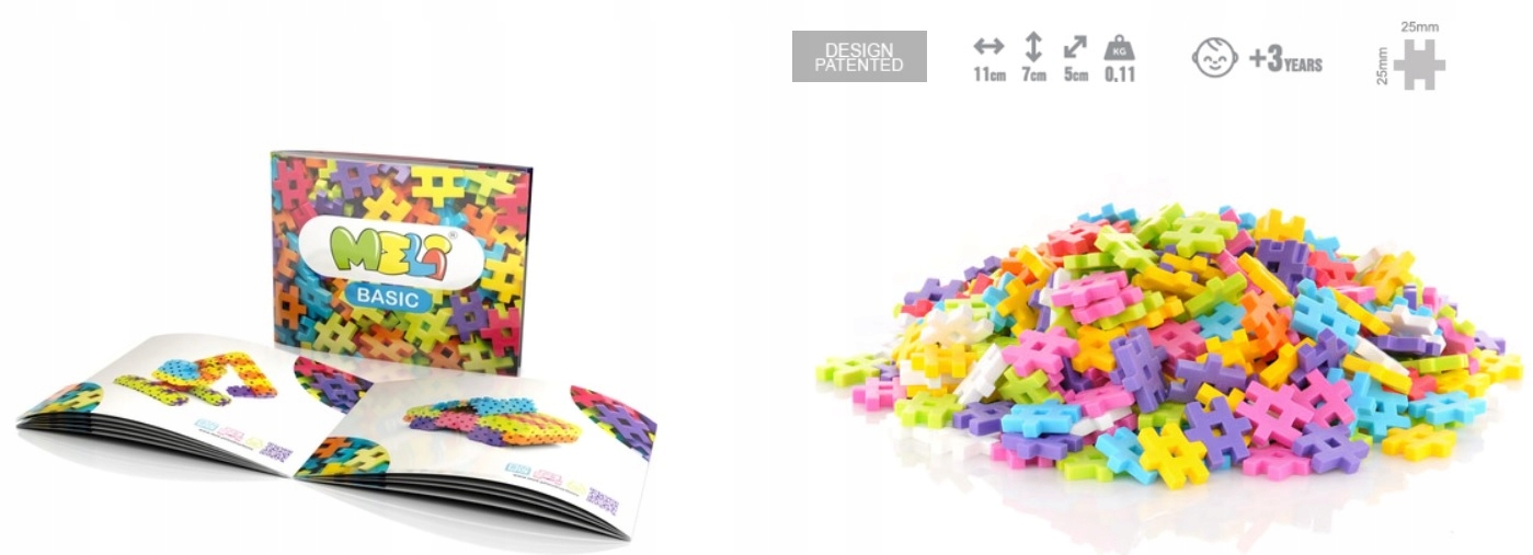 Серія MELI BASIC - це гарантія розумної та розвиваючої гри з блискучими кубиками, які допоможуть вашій дитині розкрити свої навички конструювання. Гнучкі та приємні на дотик кубики-пазли перенесуть малюка у світ уяви. Плоскі однорідні елементи в приємних кольорах можна легко з’єднати за допомогою спеціальних зубців, що дозволяє створювати плоскі та об’ємні форми.