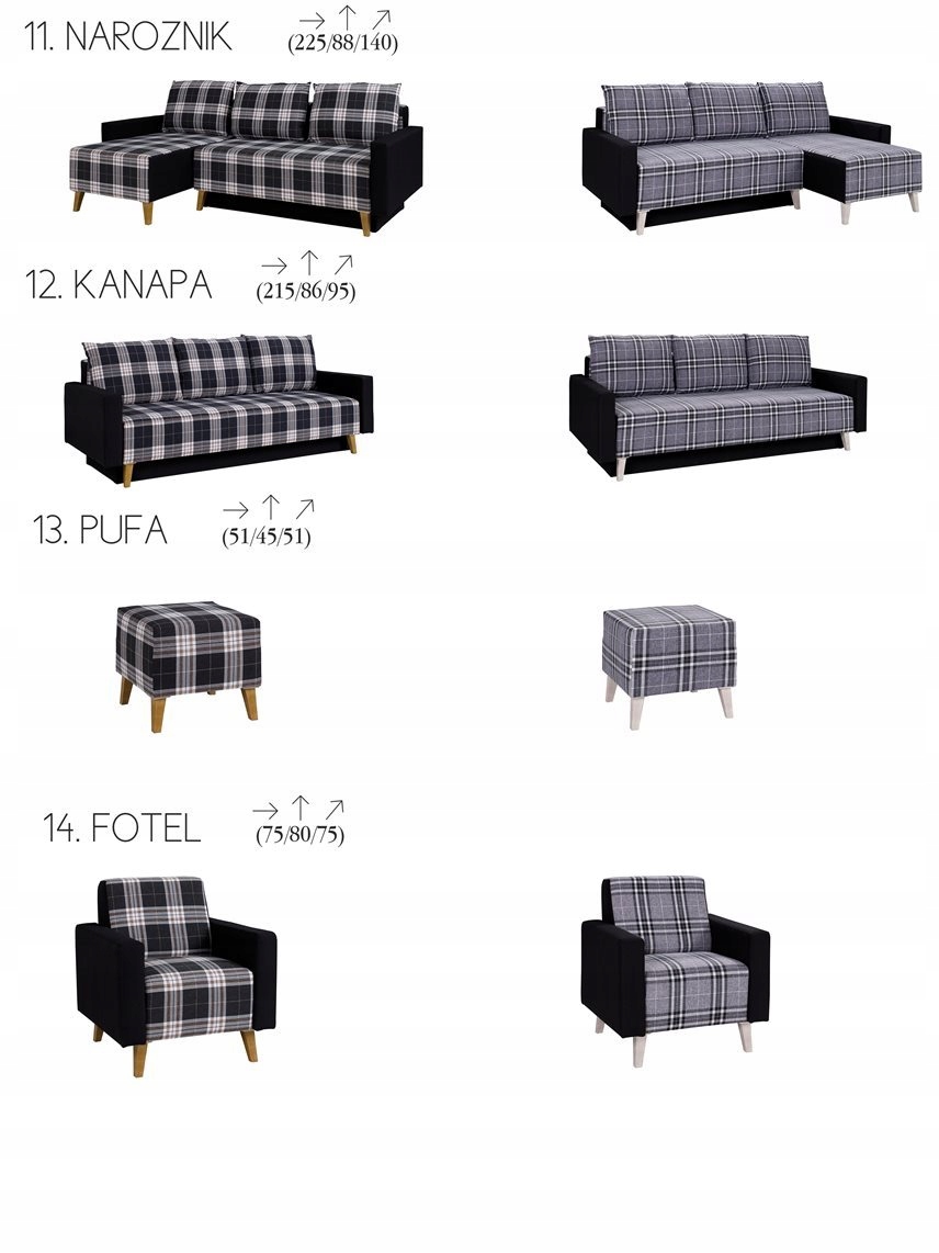 М'які меблі в двох колірних варіантах темна та світла клітка.