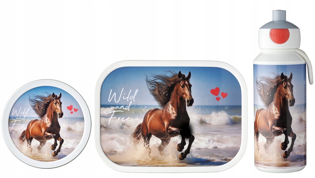 Practical set, colorful and safe breakfast, Fruit Box, a container for fruit and vegetables and a water bottle for a child with the "Mepal Wild Horse" horse motif h1>