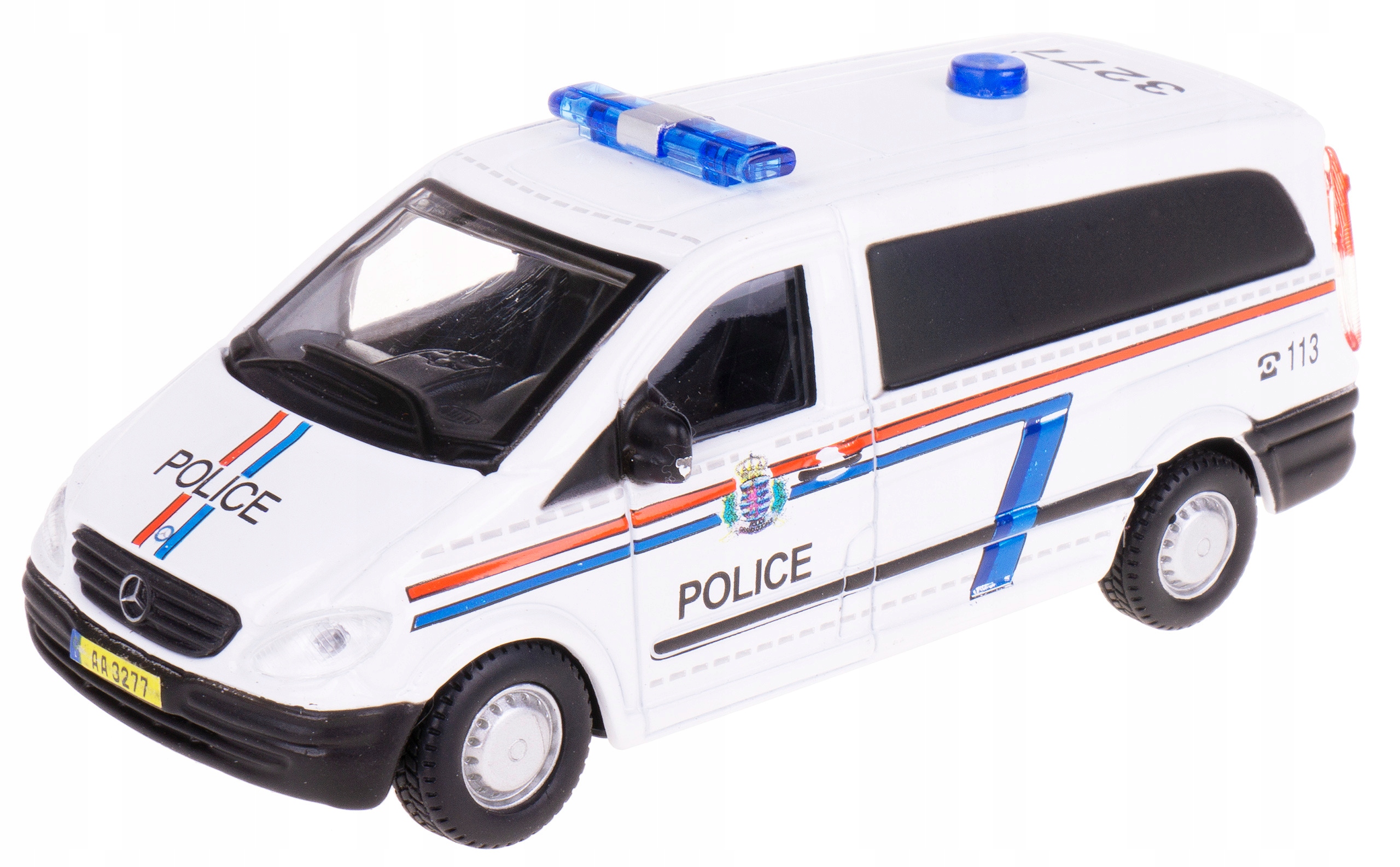 МОДЕЛЬ MERCEDES VITO POLICE (ПОЛІЦІЯ) З БІЛОГО МЕТАЛУ ВІД BBURAGO В МАСШТАБІ 1:50 №E2 32009