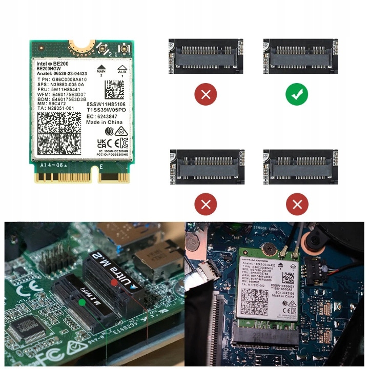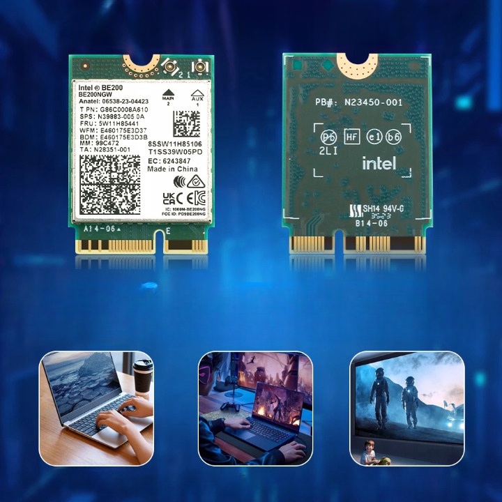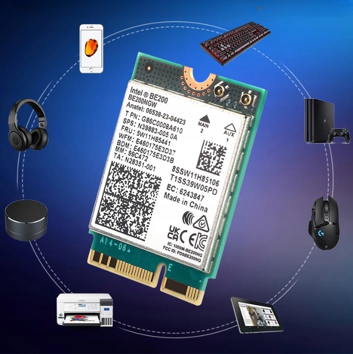 BE200 є високоінтегрованою та недорогою ефективний бездротовий адаптер, який забезпечує інтерфейс NGFF M2 (2230) і повну відповідність стандартам 802.11n/b/g/a/ac/ax. Швидкість бездротової передачі може сягати до 8774 Мбіт/с!