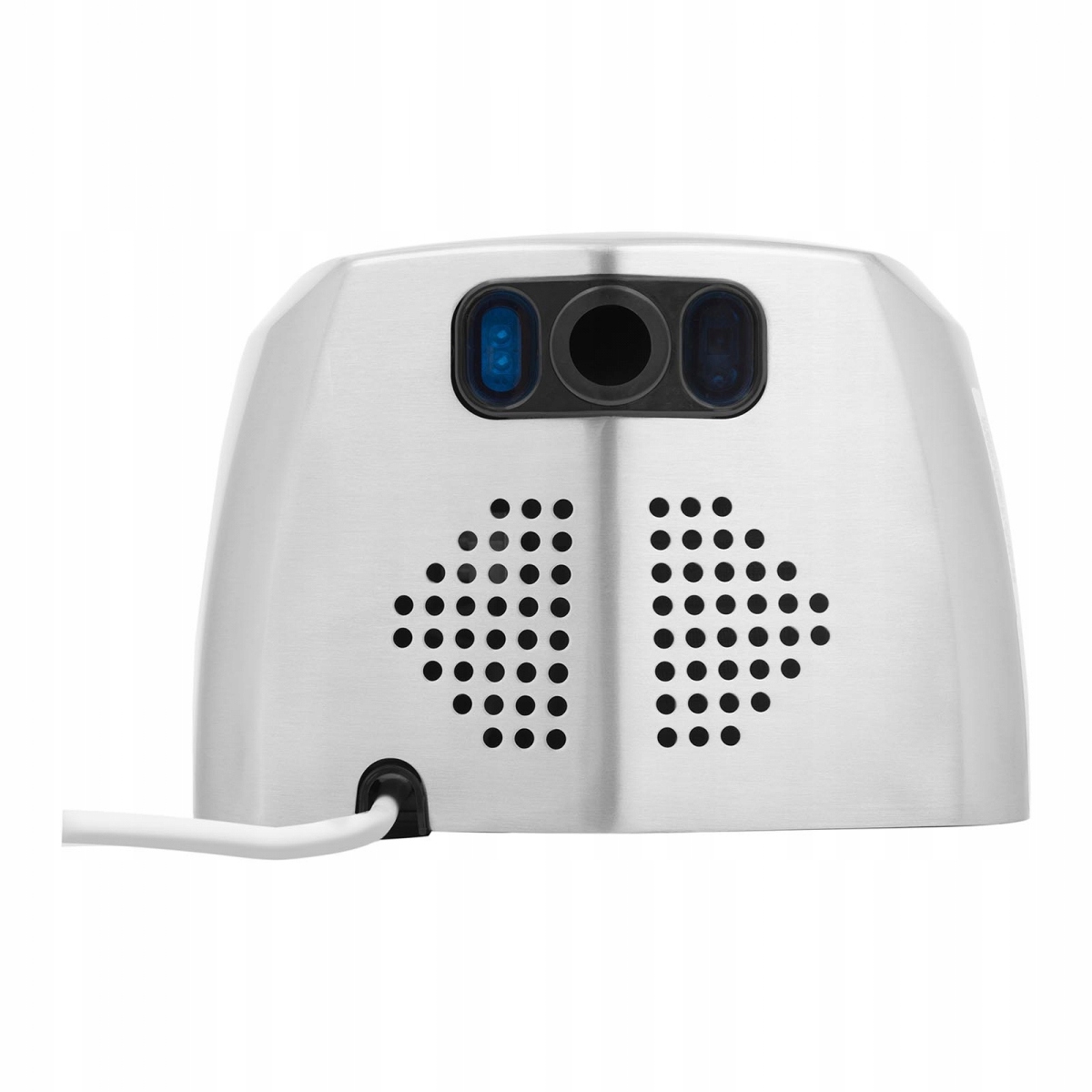 Безпека гарантується міцним корпусом з нержавіючої сталі, стійкою до механічних пошкоджень і корозії. Крім того, на його матовій поверхні не залишаються відбитки пальців. Компактне обладнання оснащене шнуром живлення з вилкою.