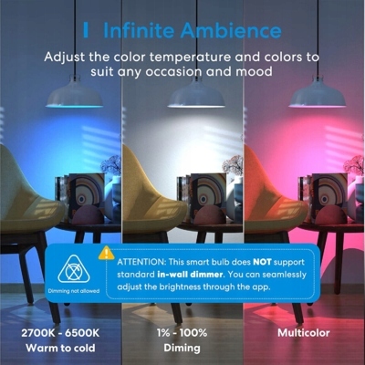 - Розумна лампочка з голосовим керуванням. Розумна лампочка сумісна з Apple HomeKit, Siri, Apple Watch, HomePod Mini, AirPods, Amazon Alexa, Echo, Echo Dot, Google Assistant, Google Home, Nest Hub, Nest Audio та Nest Mini , може керувати лампочкою безпосередньо за допомогою голосових команд. Просто введіть голосову команду, щоб увімкнути/вимкнути світло, зменшити/збільшити його яскравість і за потреби встановити певний колір.
