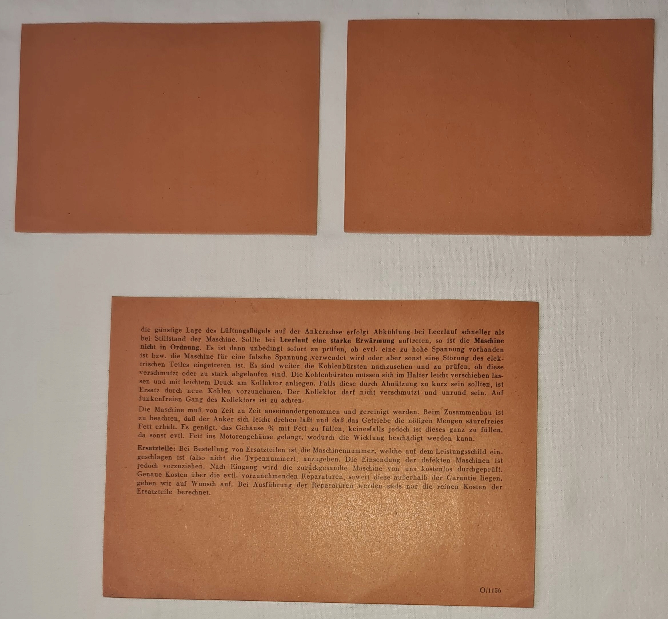 Гарантійна картка німецькою мовою на картці, серед інших технічних деталей електричного навчання. Метабо.