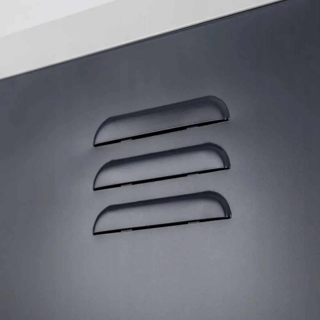 Виготовлена з високоякісної сталі та покрита стійкою до пошкоджень порошковою фарбою сірого кольору (RAL 7035), шафа Mega-M забезпечує довговічність навіть після інтенсивного використання. Це інвестиція, яка прослужить багато років, зберігаючи свій естетичний вигляд і функціональність.