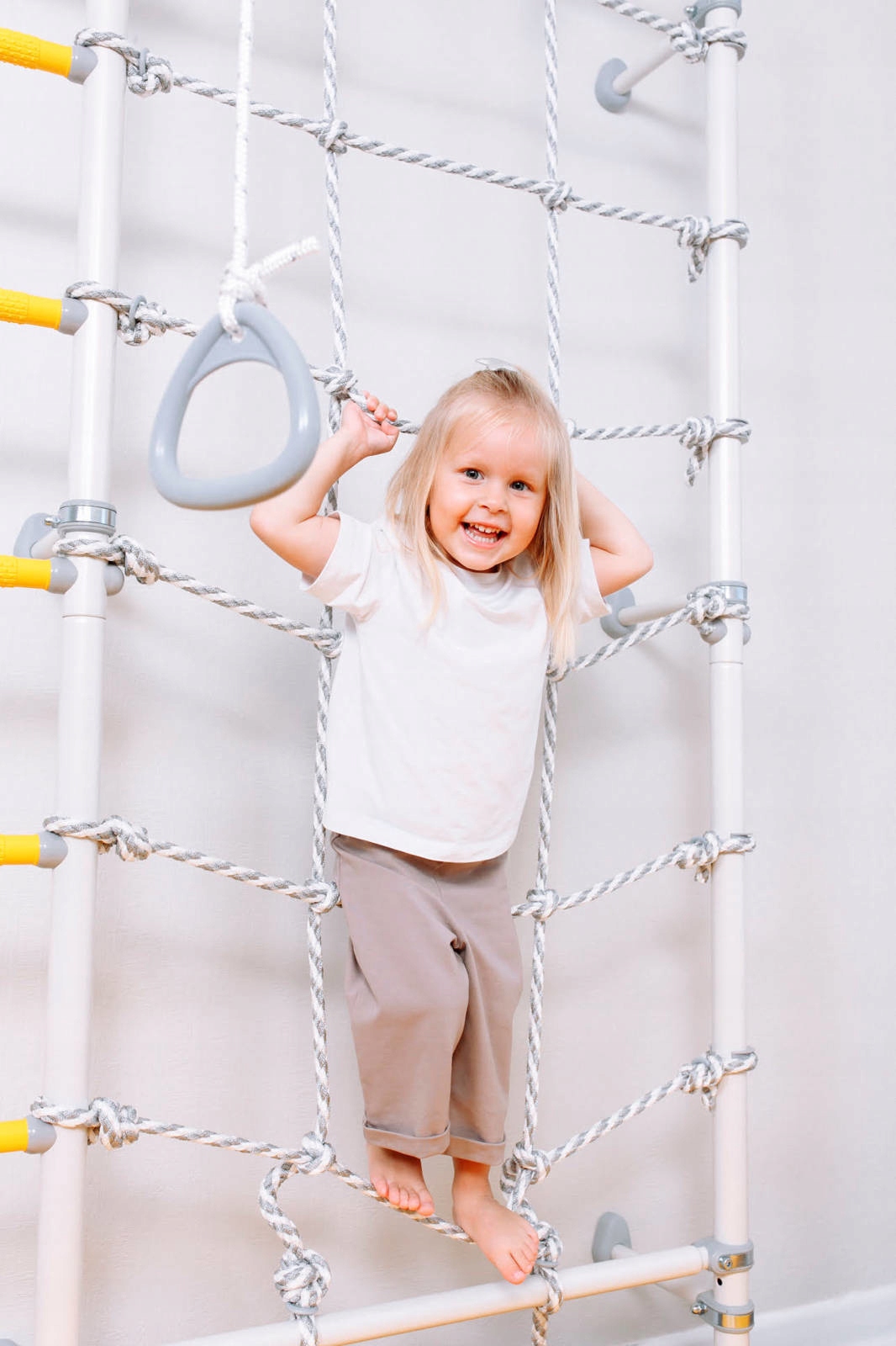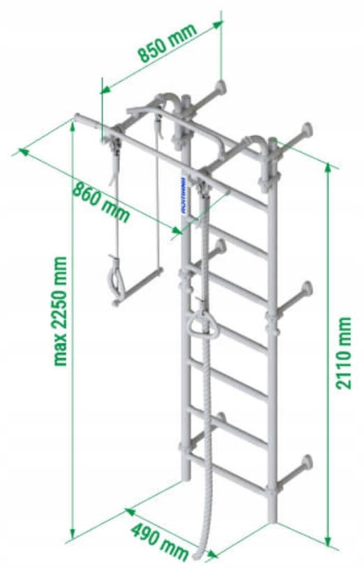 Protected Rovi -gymnastic. запатентований і насолоджуйтесь незвичною популярністю. Продукт відповідає вимогам європейських стандартів та має сертифікат, виданий німецькою організацією сертифікації NORD. Сертифікат CE є гарантією якості та безпеки продукції. Усі зовнішні елементи не мають гострих кутів і нерівномірності. Всі різьбові фурнітури спортивних сходи засліплені декоративними, пластиковими ковпачками, а інші частини гладкі. Продукт рекомендується дітям старше 3 років. Виробник оголошує 100 кг як максимально допустиме навантаження на сходах. Під час тестування сертифікатом драбина завантажується навантаженням 150 кг, тоді як фабричні випробування, виконані виробником, показали міцність матеріалу до максимуму 230 кг. Інструкції щодо використання включають точну інформацію про те, як встановити спортивну драбину, вказівки на правильне та безпечне використання. Технічні дані