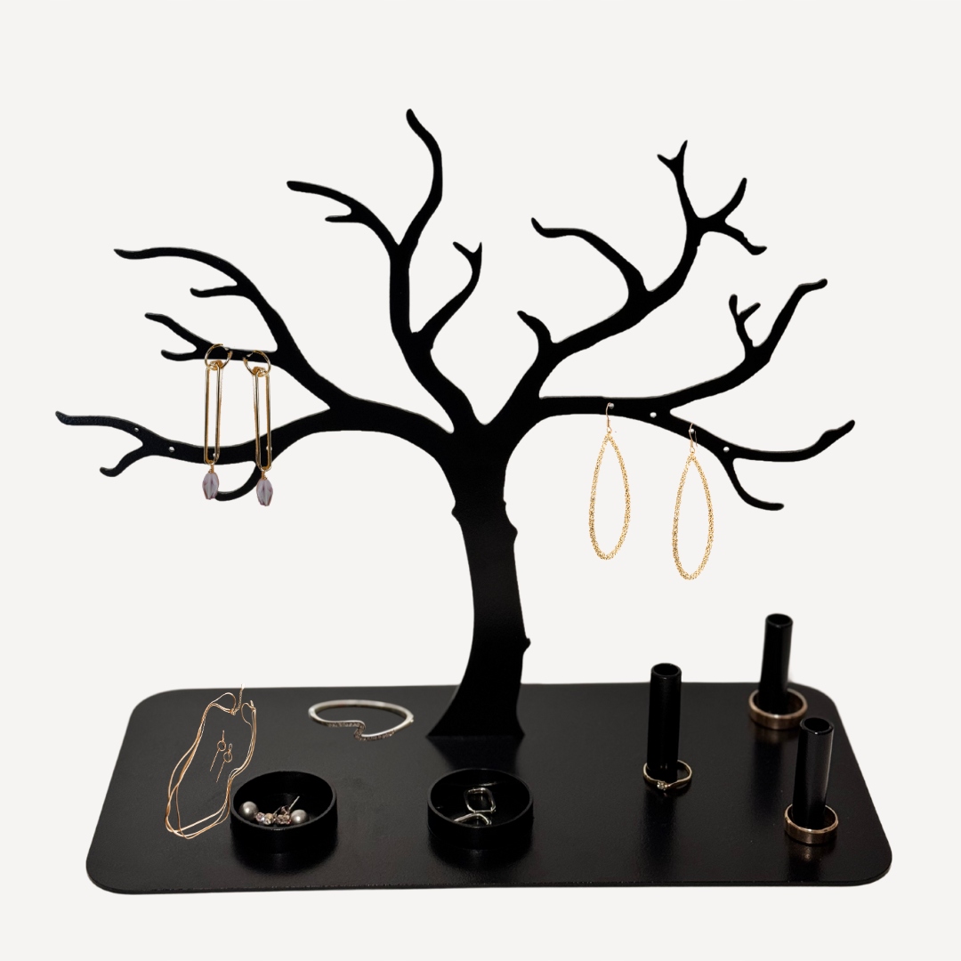 ✔ Інноваційний дизайн: підставка має прямокутну основу з двома колами, розташованими на ній. Саме в цих колах можна зберігати улюблені прикраси, зберігаючи порядок і елегантність. І красиво розгалужене дерево, на якому можна зберігати улюблені намиста, браслети, сережки.