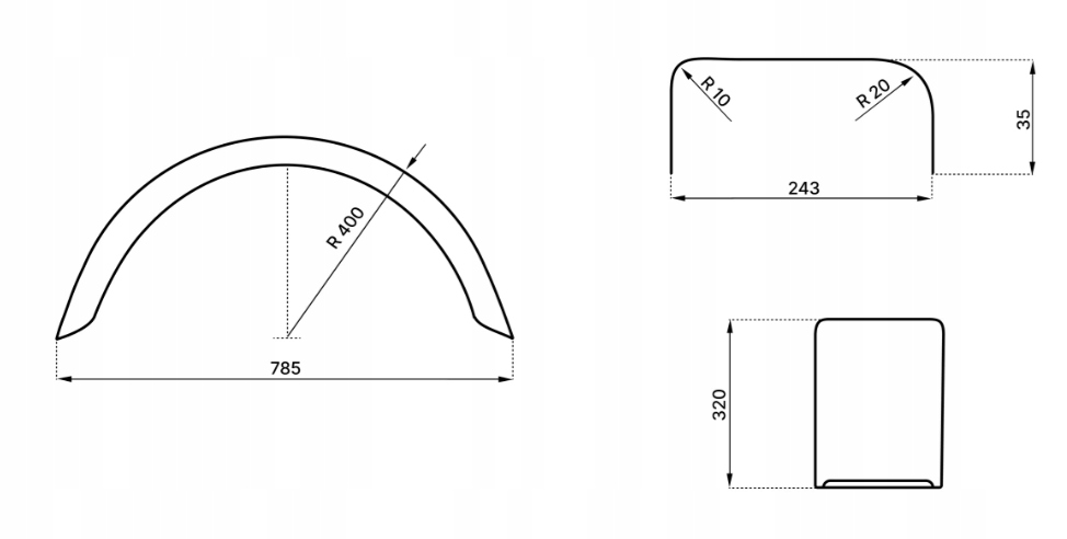 Фендер не має кріпильних отворів, що дозволяє точного кріплення до певного транспортного засобу.