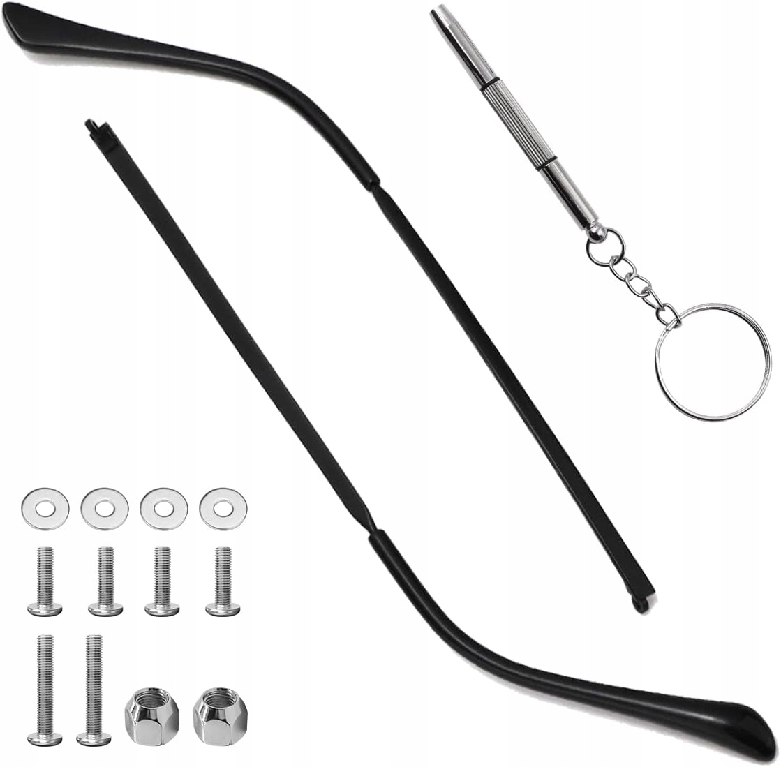 ①Металеве наголів’я для окулярів, 1 пара змінних окулярів із гвинтами та викруткою, дужки для окулярів із універсального сплаву, змінне наголів’я для сонцезахисних окулярів, короткозорість, ремонт