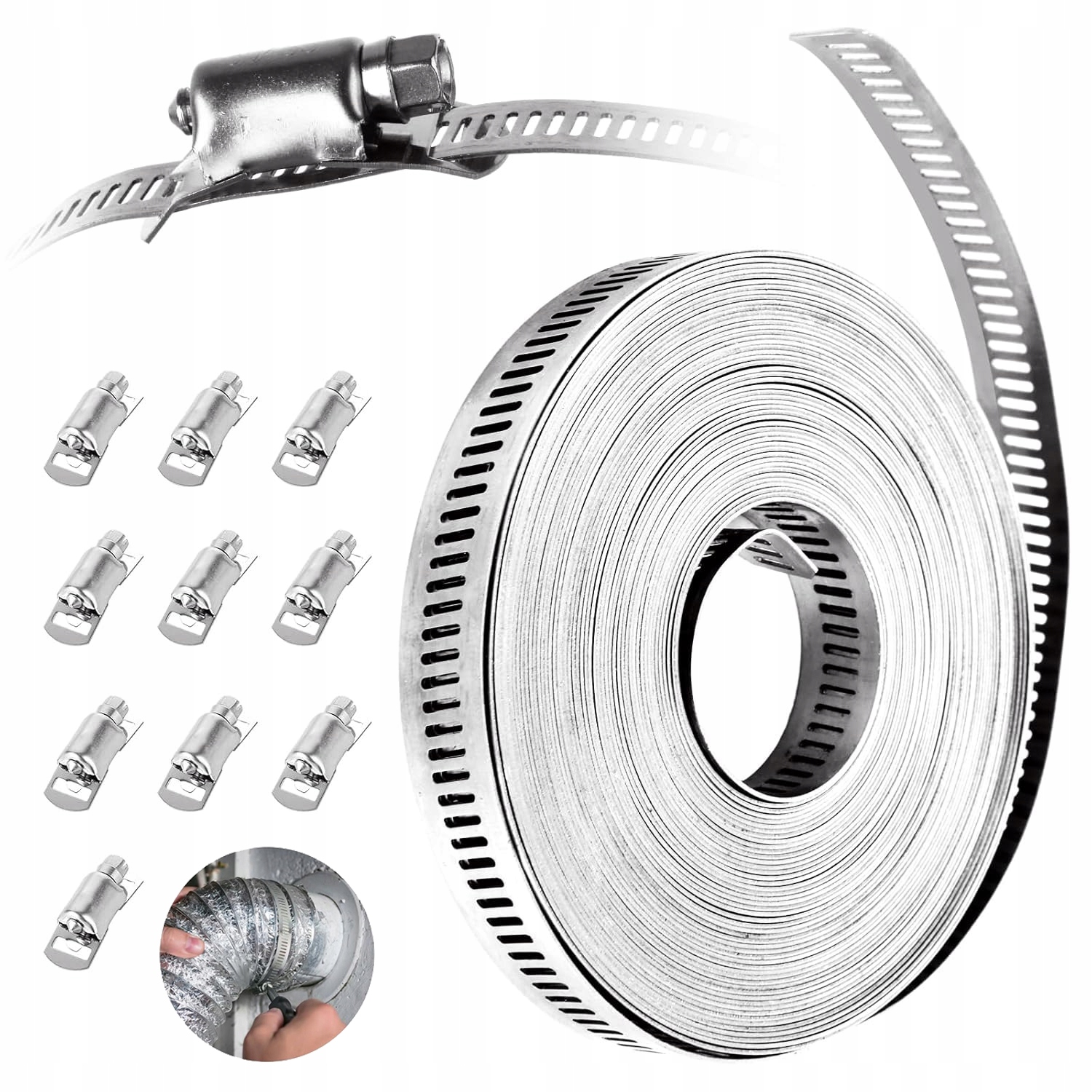 ▶️▶️5 МЕТРОВІ НЕСКІНЧЕННІ ХОМУТИ З НЕРЖАВІЮЧОЇ СТАЛІ, ВИГОТОВЛЕНІ З НЕРЖАВІЮЧОЇ СТАЛІ, РЕГУЛЮВАНИЙ НАБІР ХОМУТІВ ДЛЯ ВОДОПРОВОДІВ, РЕЗЕРВУАРІВ, ГАЗОПРУБОК, АВТОМОБІЛЬНИХ ОХОЛОДЖУВАЧІВ ◀️◀️