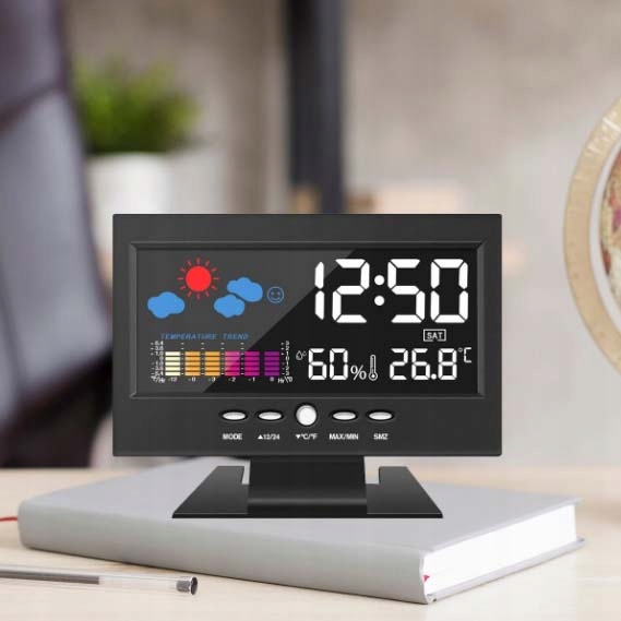 НОВИНКА - Багатофункціональна світлодіодна метеостанція - це пристрій, який має внутрішній термометр, гігрометр, годинник, будильник і дуже великий і чіткий кольоровий дисплей!