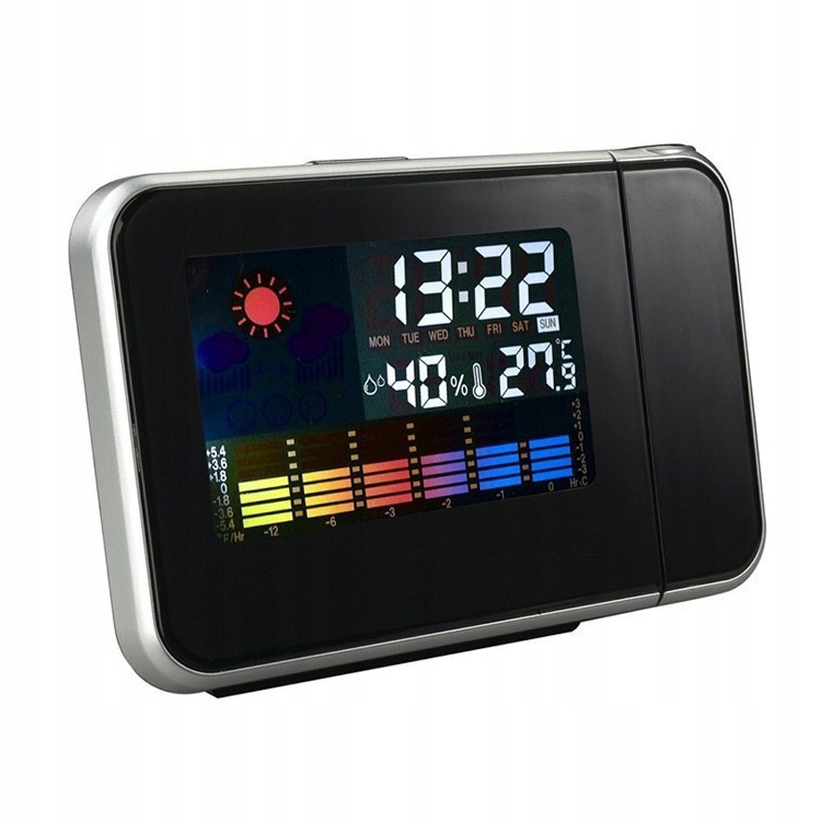 Метеостанція з проектором — ідеальне рішення для тих, хто цінує комфорт, функціональність та естетику. Завдяки йому ви матимете під рукою необхідну інформацію про температуру та вологість. Пристрій найкраще працює в темних кімнатах, наприклад у спальні ввечері.