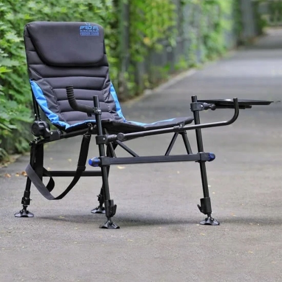 - Регульований спинка: стілець оснащений регульованою спинкою, що дозволяє регулювати кут нахилу, забезпечуючи оптимальний комфорт під час риболовлі.
