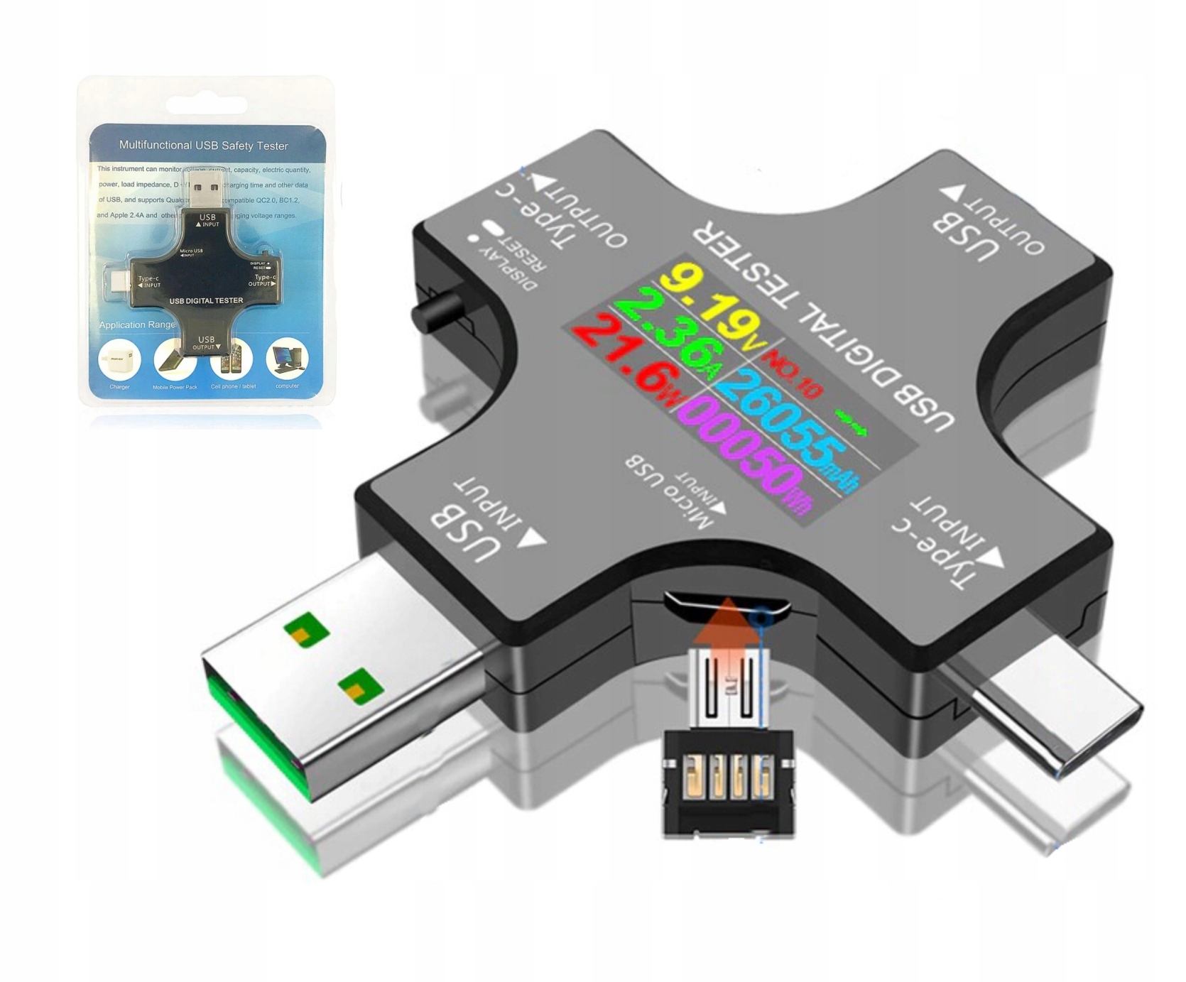 Тестер, призначений для перевірки блоків живлення, зарядних пристроїв, кабелів, блоків живлення та інших пристроїв, що живляться від USB A, USB-C і micro USB.