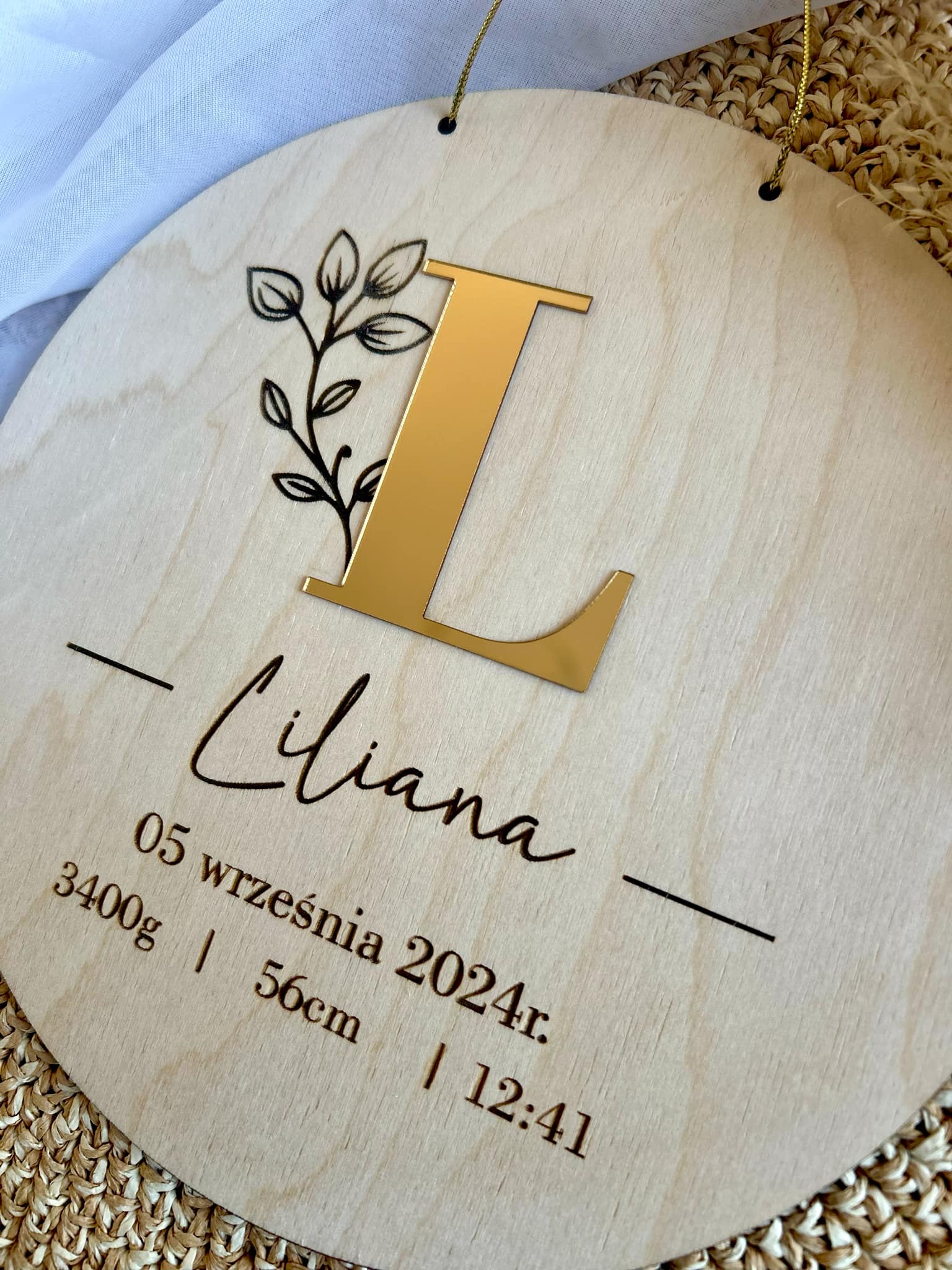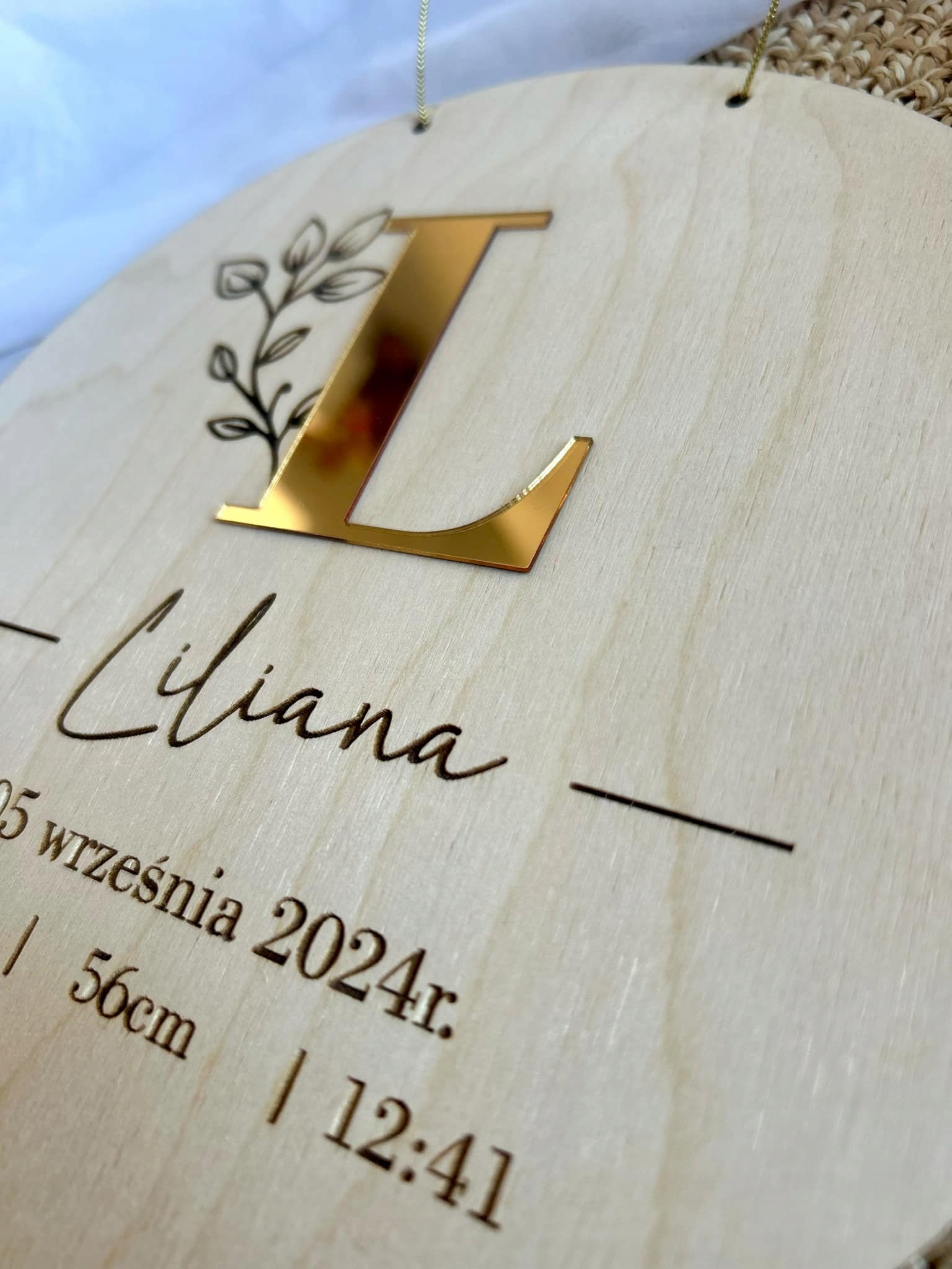 Красива, дерев’яна дитяча метрика з Золотою буквою - чудова ідея для сувенірів з особливого дня народження дитини. p> ✅ персоналізована метрика вашої дитини