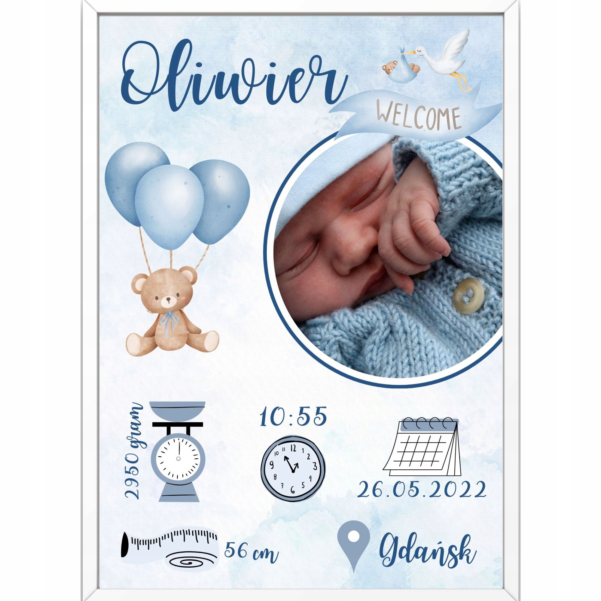 METRY для дитячого хрещення Подарунок фото народження Рік Ведмідь 40x50