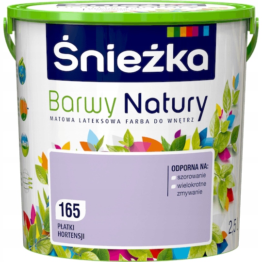 ⭐ Метня латексна фарба для внутрішніх кольорів природи гортензії пластівців 165 2,5 л фарби фарби śnieżka ⭐