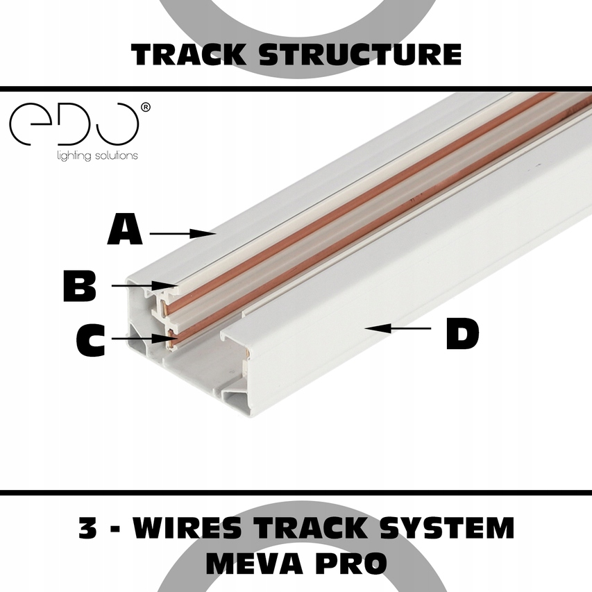 Освітлювальна рейка призначена для 3-х провідна та 1-ланцюгова рейкова система MEVA PRO для монтажу освітлювальних приладів та блоку живлення. Корпус рейки виготовлений з високоякісного екструдованого профілю з алюмінієвого сплаву, він оснащений 3 мідними струмопровідними смугами, які ізольовані вогнетривким ПВХ матеріалом. Використання 3-провідної системи забезпечує заземлення всіх його компонентів. Рейка сумісна з декількома типами роз’ємів і аксесуарів, забезпечуючи різноманітні схеми та дизайни освітлення. Доступний у двох класичних і позачасових кольорах: білому та чорному.