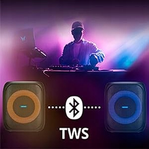 Чому лише один динамік, коли можна отримати справжній стереозвук? Завдяки сучасній технології TWS (True Wireless Stereo) це не проблема. Ви можете легко з’єднати дві вечірні колонки бездротовим способом. Це забезпечує справжній стереозвук і ще більше потужності. Це означає, що ви можете грати з потужними ударами у більшій кімнаті. Музика удвічі голосніша для вечірки удвічі імпульсивнішої!