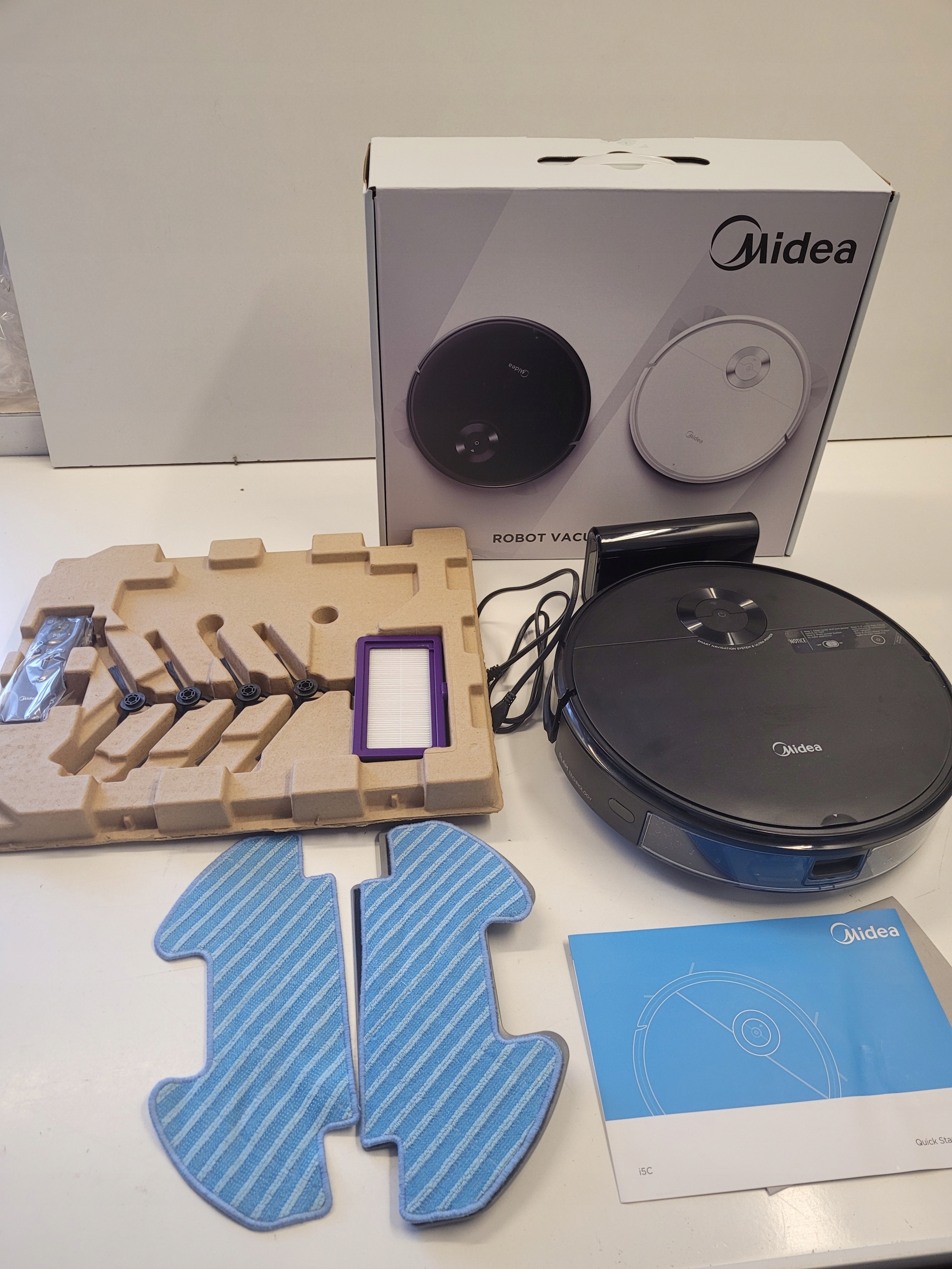 - Пристрій Midea оснащено функцією пилососу та миття. Ефективно видаляє забруднення завдяки силі всмоктування 4000 Па, а продумана конструкція резервуара для води запобігає витоку води. У комплект входить пульт дистанційного керування, що зробить керування роботом ще зручнішим! Завдяки 3 режимам роботи та 4 рівням всмоктування ви можете налаштувати роботу пристрою відповідно до своїх уподобань, а для ще більш комфортної роботи створено спеціальний додаток, який також дозволяє керувати роботом.